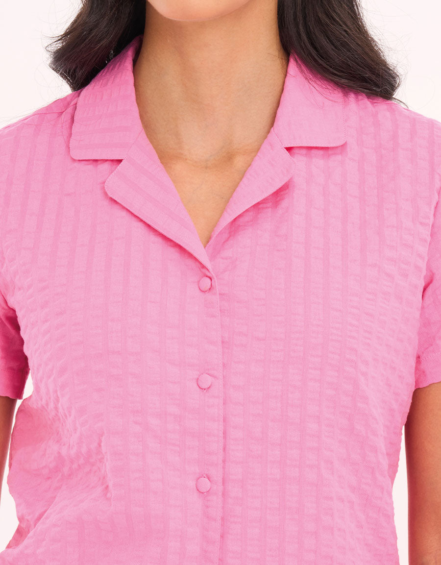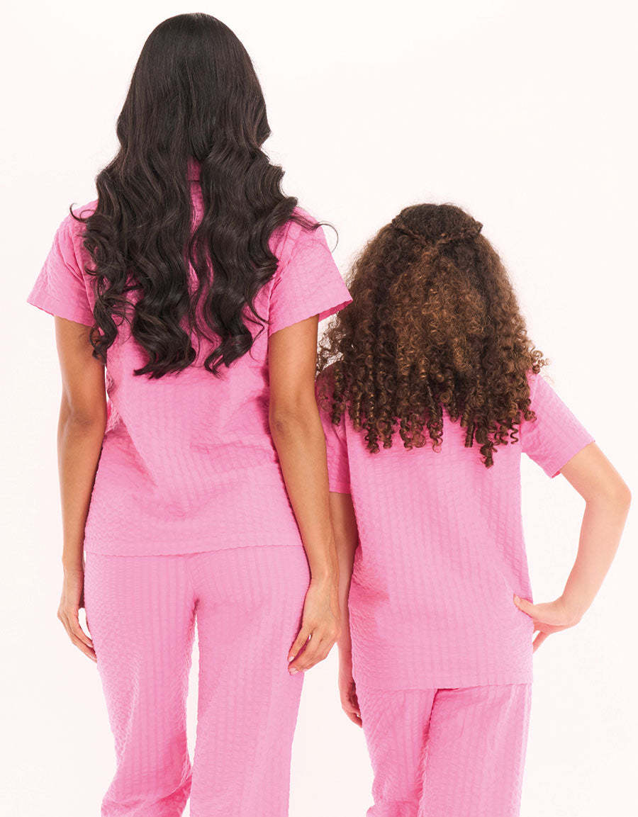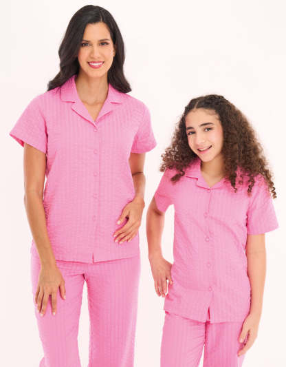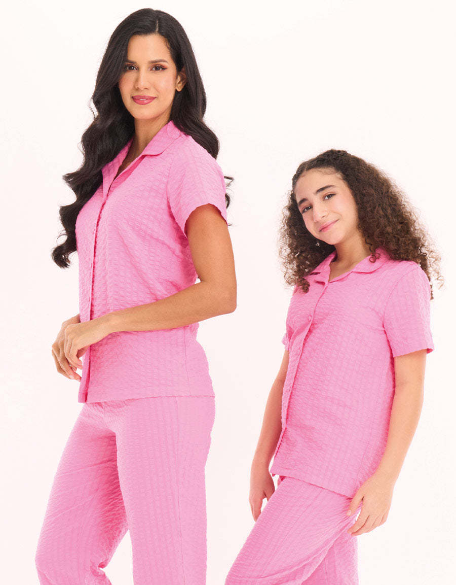 استمتعي بالراحة والأناقة مع هذا الطقم الوردي المزخرف بالزهور. مصنوع من قماش خفيف، فهو ناعم، ومثالي لليالي دافئة، صباحات هادئة، وكل لحظة بينهما.