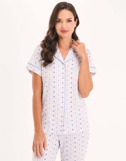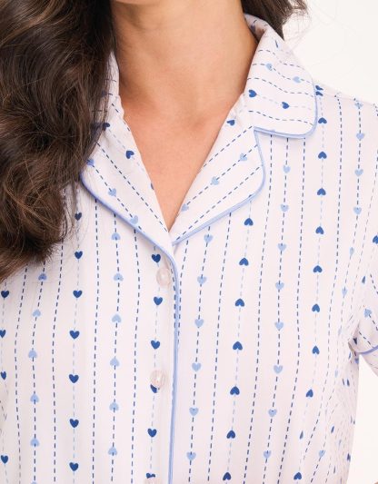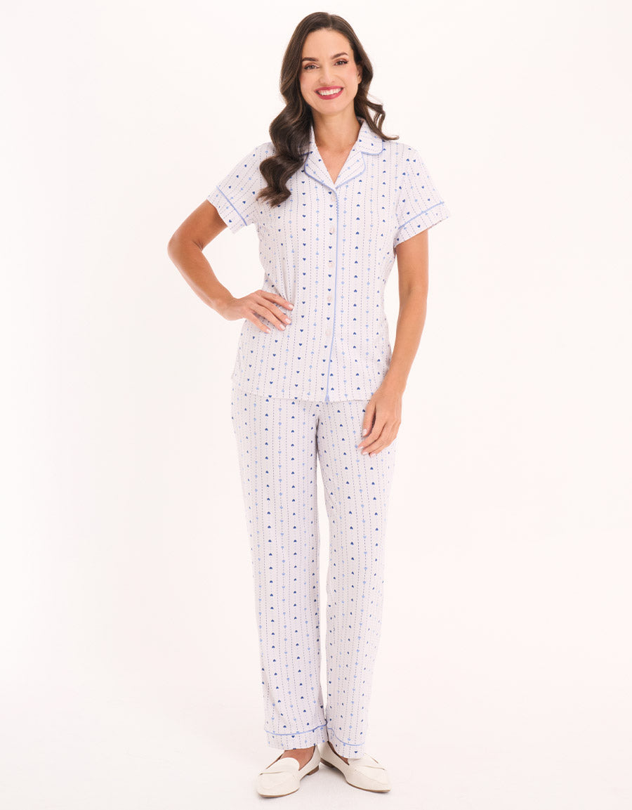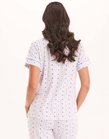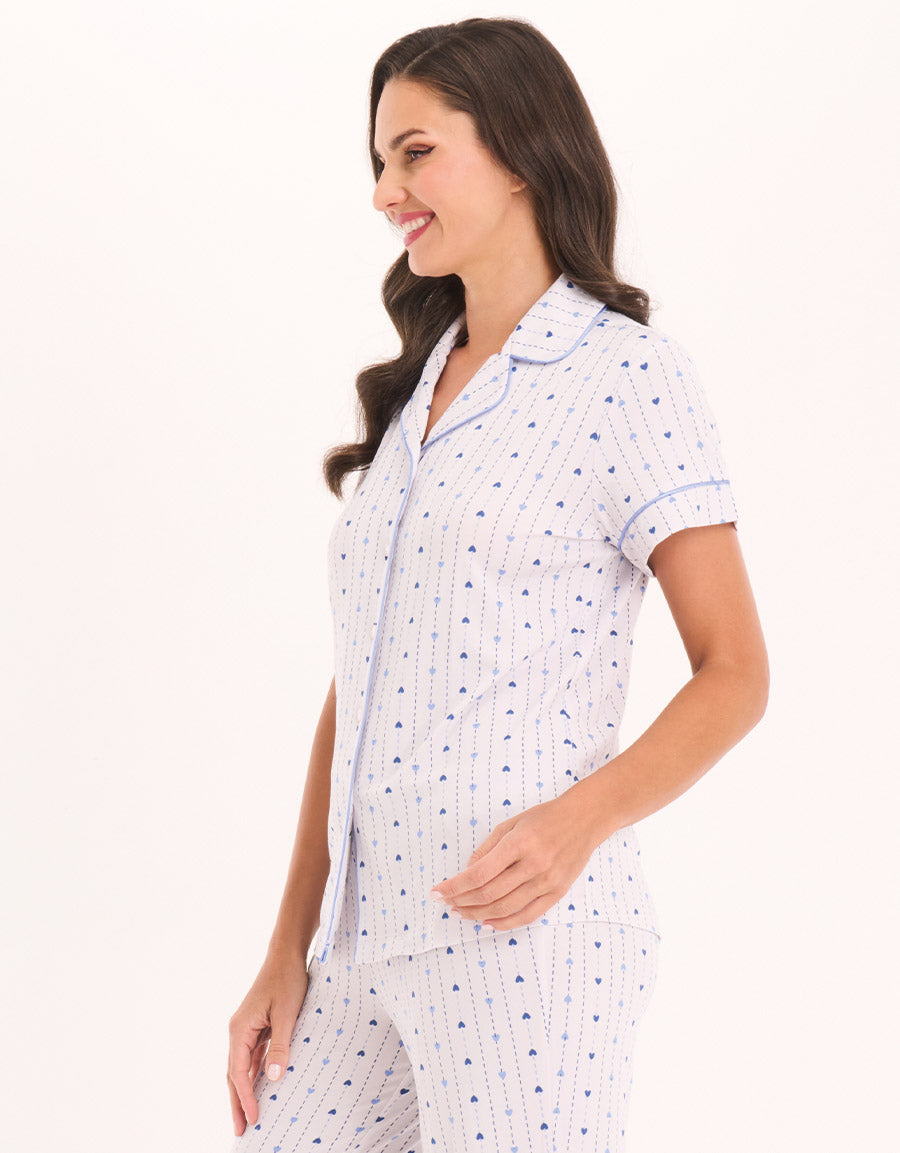 تتميز هذه البيجاما الرمادية بخطوط وقلوب مرحة، ومصنوعة من قماش جيرسيه بوليستر سباندكس ناعم لملمس مريح ومرن. مثالية للاسترخاء أو لأحلام هانئة.