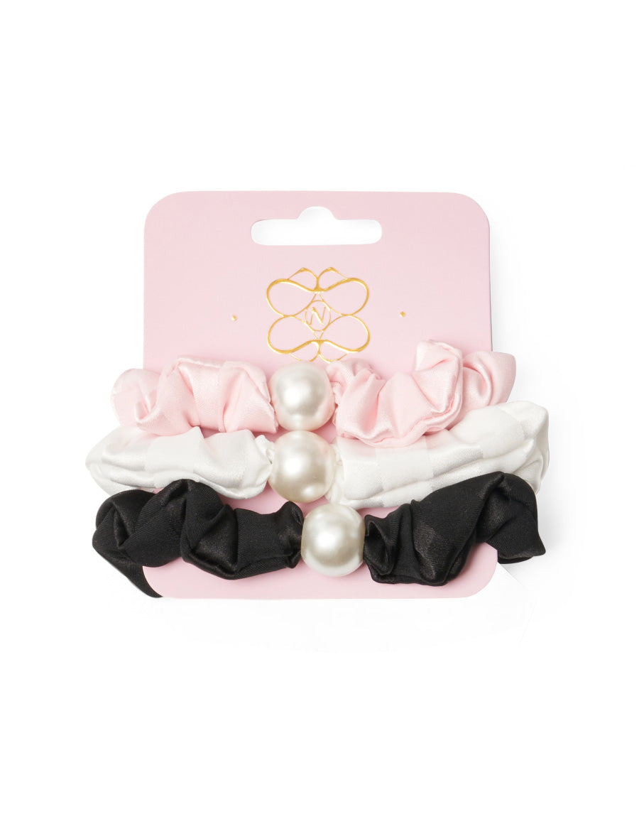 أضيفي لمسة من اللمعان إلى إطلالتك اليومية مع هذه المجموعة الثلاثية من ربطات الشعر المصنوعة من الساتان الجاكار الناعم لمظهر مصقول.