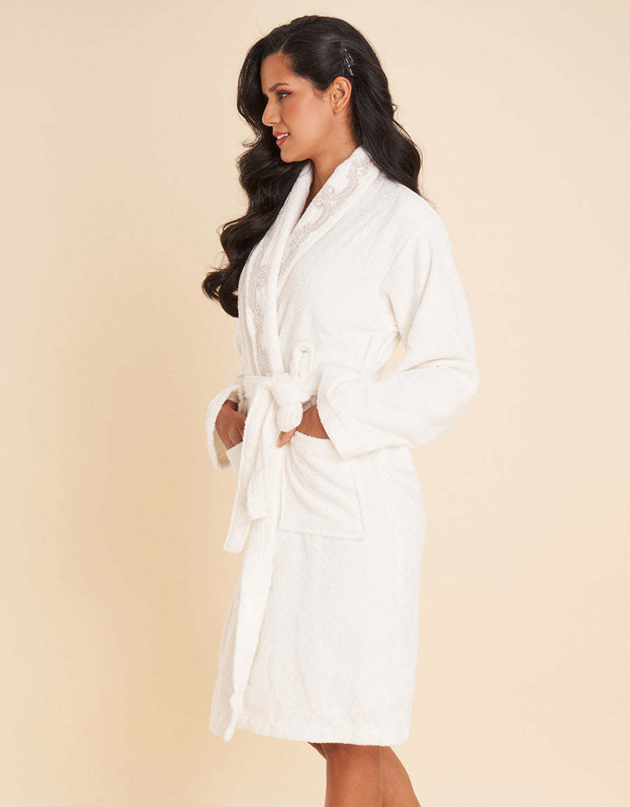 انغمسي في الفخامة مع طقم الحمام المكون من 3 قطع، المصنوع من قماش التيري الفاخر لنعومة مثالية. يضم هذا الطقم الأنيق روب حمام مطرز دافئ، منشفة يد متناسقة، ومنشفة حمام لتجربة استثنائية تشبه أجواء السبا.