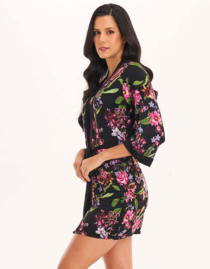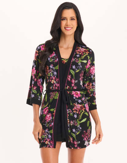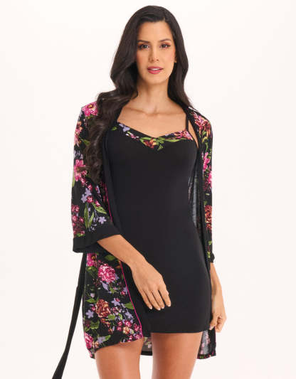يُعد طقم القميص القصير الأسود مزيجاً مثالياً من النعومة والمرونة، مصنوع من فيسكوز سباندكس ويتميز بقصة جذابة توفّر راحة يومية وأناقة عصرية. يأتي الطقم مع روب وقميص نوم قصير.
