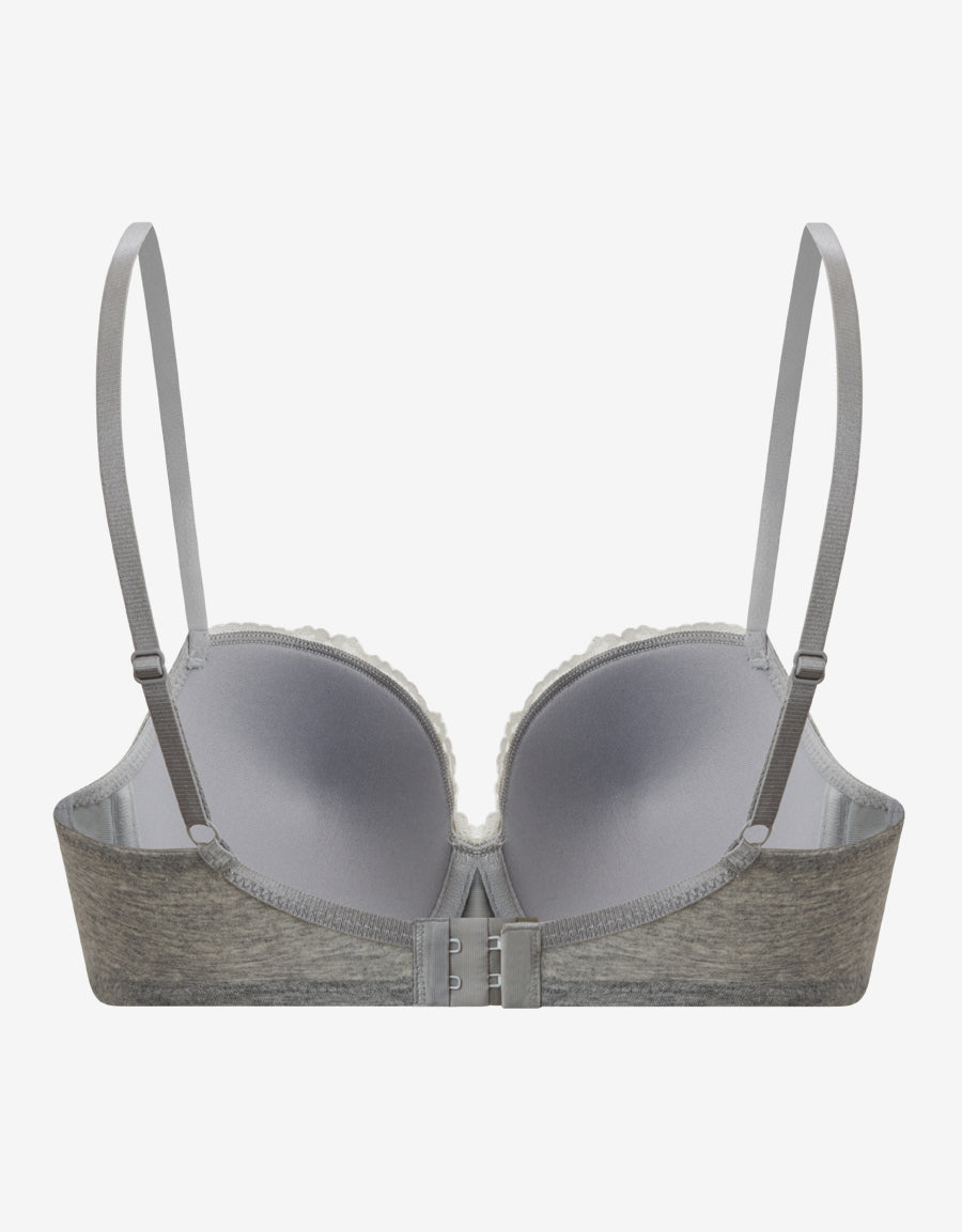 صدرية بالكونيت من القطن بلون رمادي، مزينة بحافة شريطية ناعمة وربطة وسط لإطلالة أنثوية وناعمة.