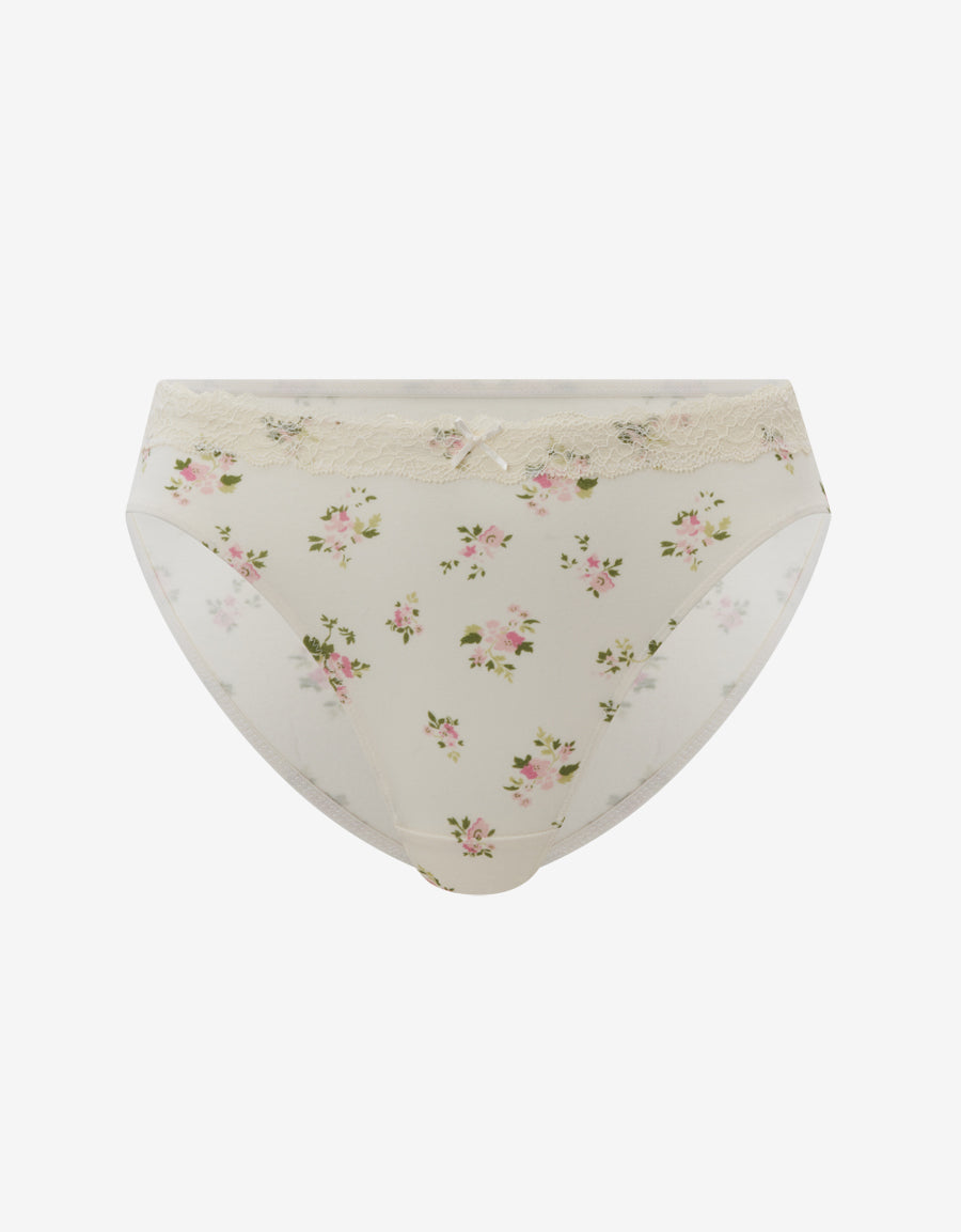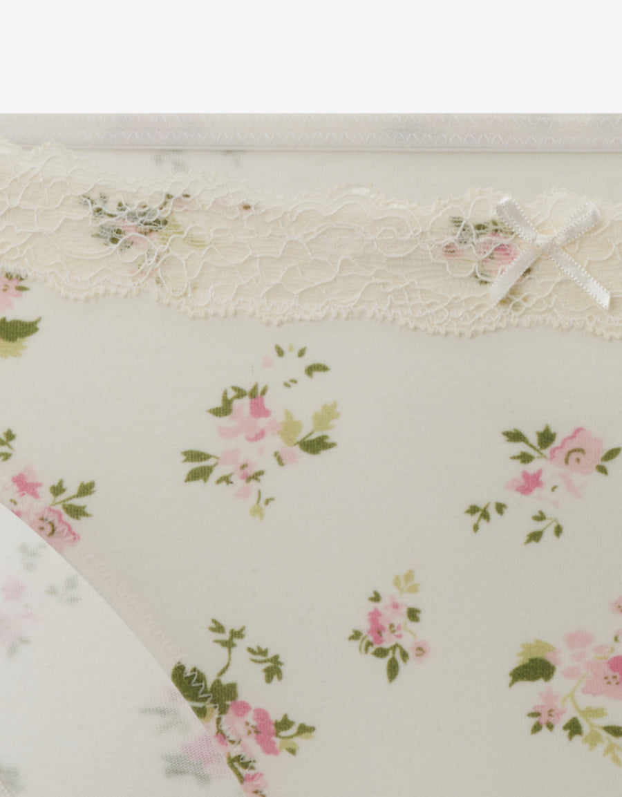 صُنع هذا البكيني بلون النيود من القطن، ومزين بدانتيل ونقشة زهرية، لاطلالة ناعمة تعزز شكلك بأناقة.