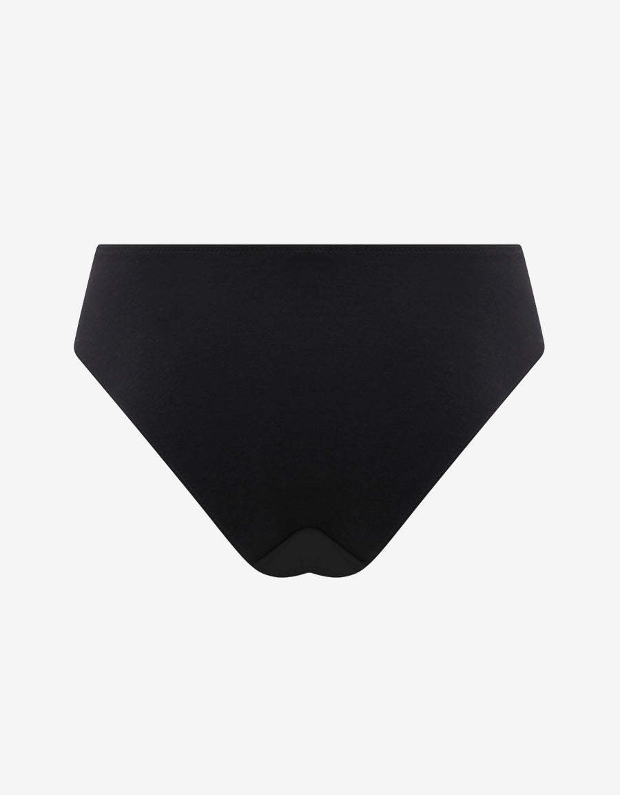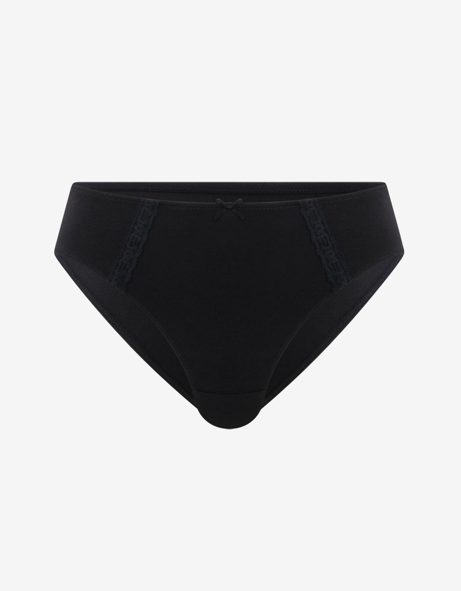 أضيفي لمسة مرحة أنيقة إلى مجموعتك مع هذا البرازيلي القطني الأسود المزود بفتحات شريط زخرفية.