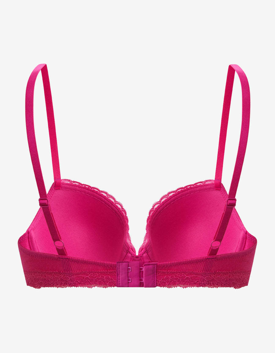 أضيفي لمسة لون جريئة إلى مجموعتك مع هذه الصدرية الوردية الداكنة بفتحة صدر عميقة. مصنوعة من مزيج دانتيل وقماش مضلع وقطن، تأتي بدون دعم بوش أب وتصميم مثالي للراحة والأناقة.
