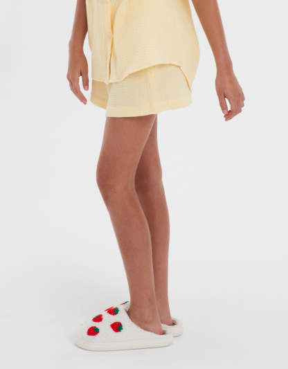 هذه الشورتات الأنيقة هي الإضافة المثالية لخزانتك الصيفية. مصنوعة من قماش ناعم وخفيف، توفر الراحة والمرونة للاستخدامات اليومية أو الاسترخاء في المنزل.
