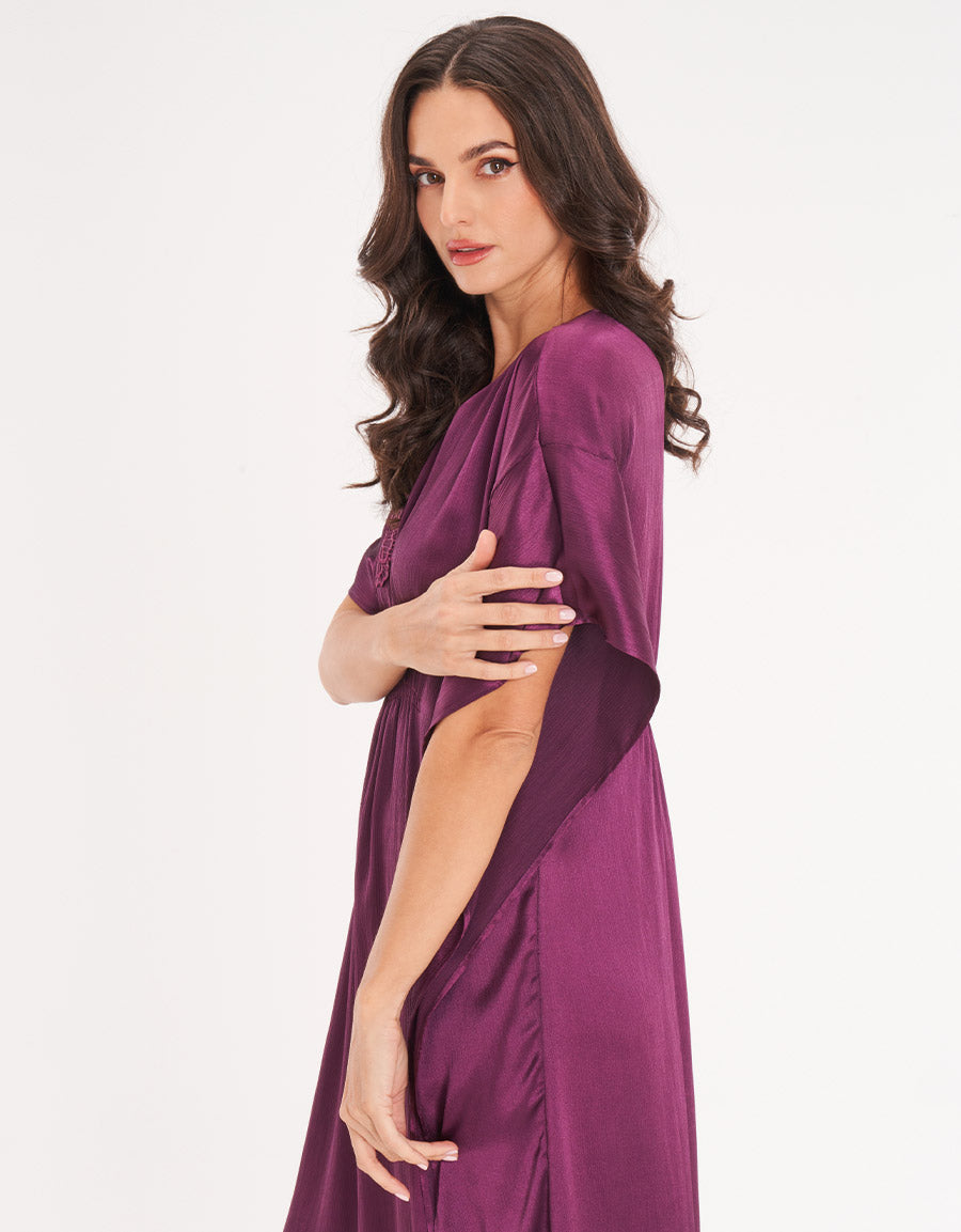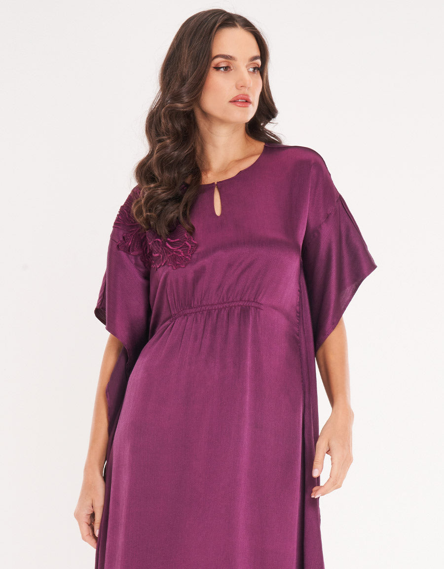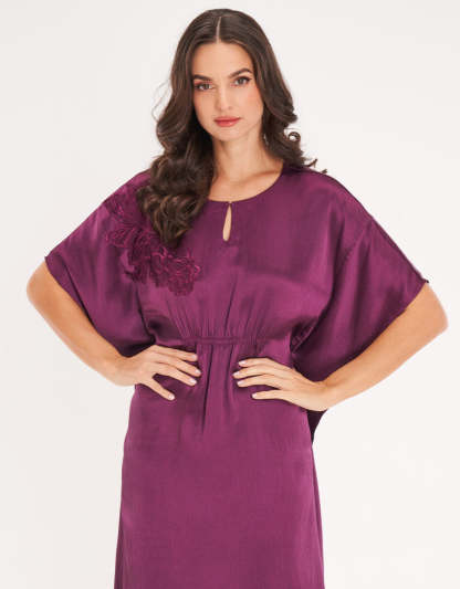 مصنوع من الساتان الناعم، يُعد هذا القميص المنزلي باللون البنفسجي الداكن خيارًا أنيقًا لتجمعات رمضان. يضفي اللون الغني والتصميم الراقي مزيجًا من الراحة والأناقة لتستمتعي بلحظاتك المميزة.