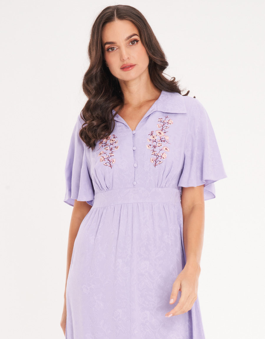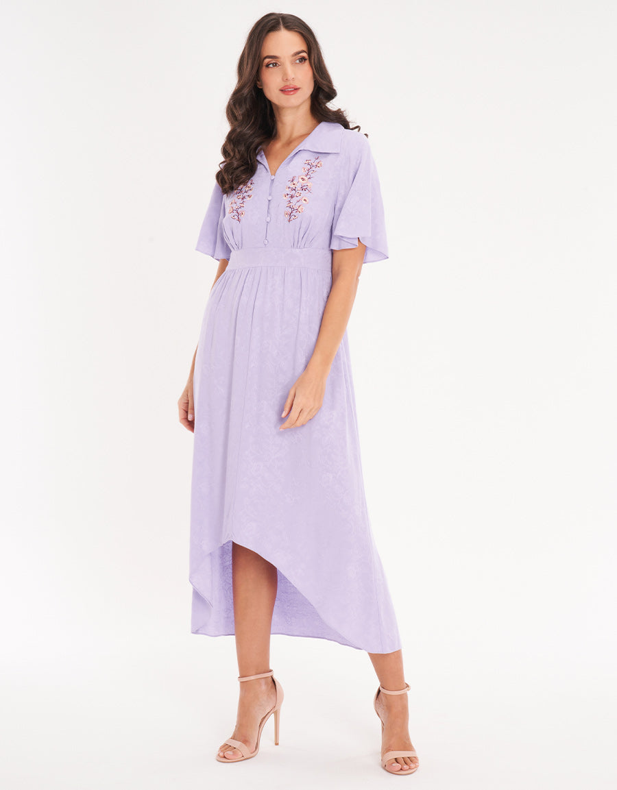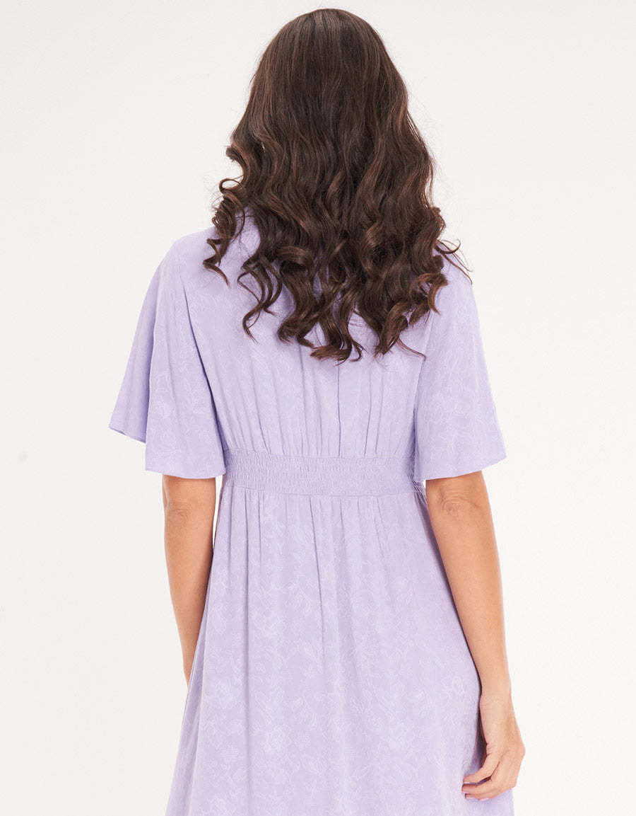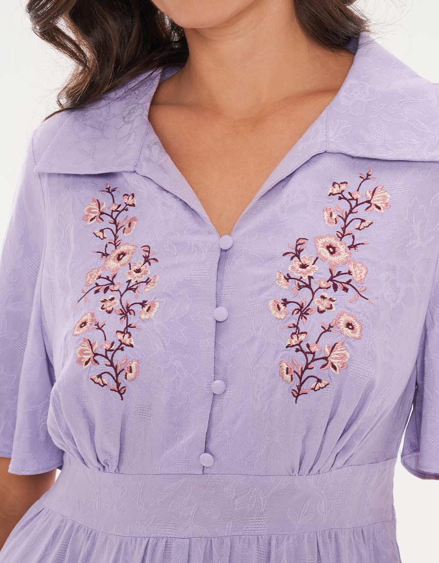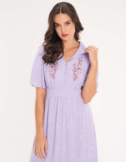 احتفلي برمضان بأناقة مع هذا القميص المنزلي المزهر باللون البنفسجي. يتميز قماش الساتان الفاخر بانسيابيته الرائعة، ليمنحكِ إطلالة محتشمة وراقية، مثالية للتجمعات مع العائلة والأصدقاء.