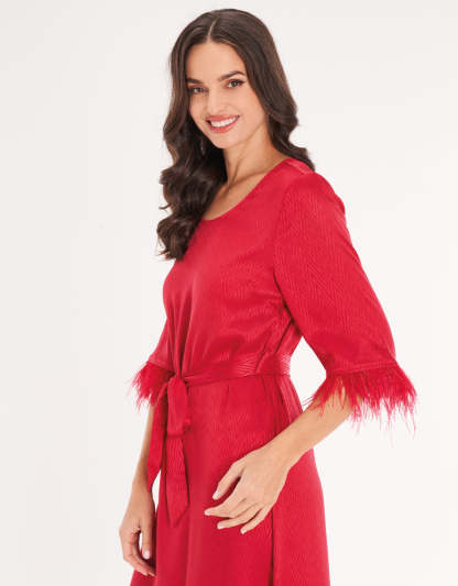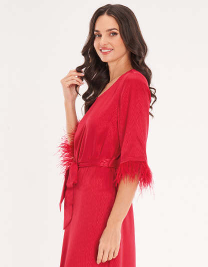 ارتقي بخزانة ملابسك الرمضانية مع هذا القميص المنزلي المصنوع من الساتان الأحمر. يوفر القماش الناعم واللامع مزيجًا من الراحة والأناقة، مما يجعله خيارًا مثاليًا للتجمعات التي ترغبين فيها بالظهور بأبهى حلة.