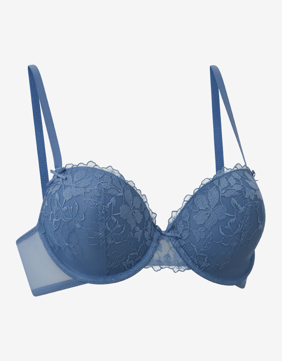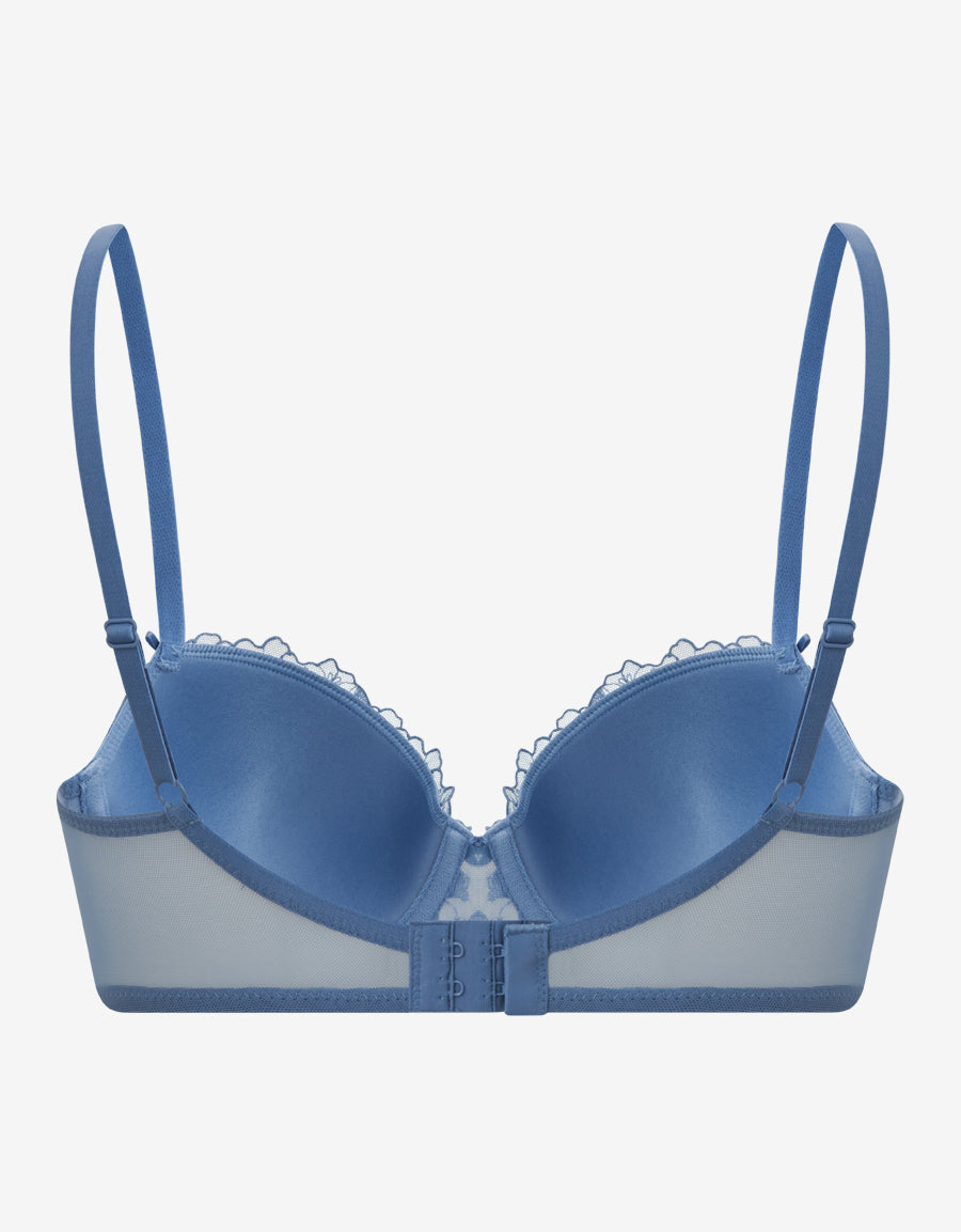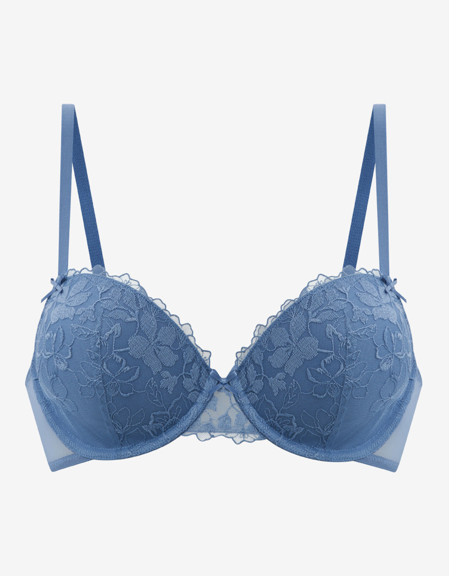 حمالة صدر بالكونيت مطرزة بالأزرق الفاتح، مزينة بتفاصيل زهرية ناعمة وربطات أنيقة لمظهر أنثوي ناعم.