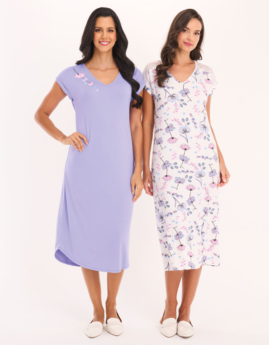2 قميص نوم طويل بطبعة الزهور