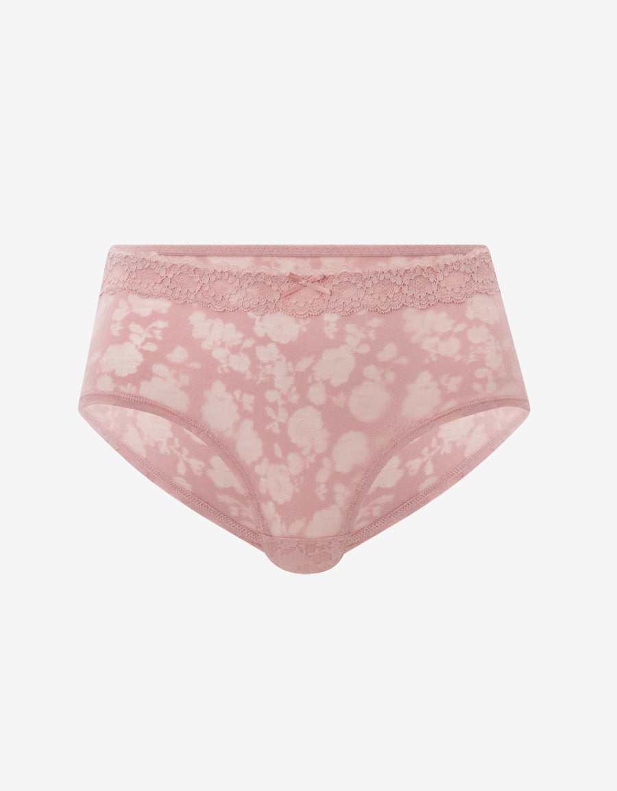 بوكسر قطني وردي ناعم وأنيق، مزين بقماش دانتيل وتفاصيل زهرية، مثالي لإضافة لمسة أنثوية إلى يومك.