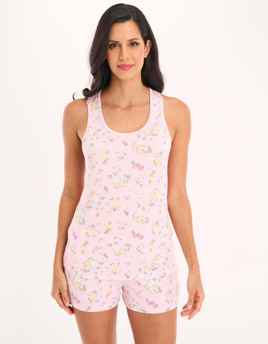 زهري وأنثوي، يقدم هذا الطقم المصنوع من بوكسر بلون وردي فاتح قصّة ناعمة ومرنة. تضيف الطبعة الزهرية لمسة حلوة، مثالي للّيالِي الدافئة أو للاسترخاء بأناقة.