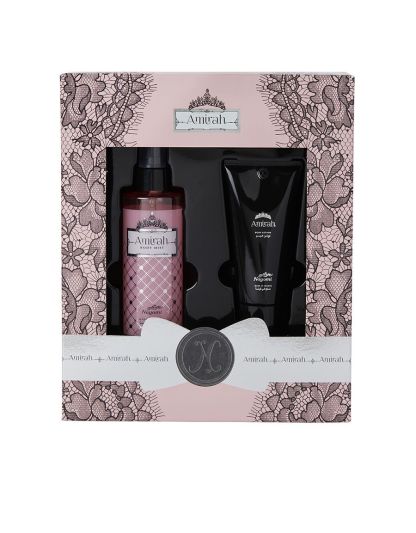 جربي الانغماس الخالص مع مجموعة الهدايا الرائعة التي تتميز بلوشن ومعطر للجسم أميرة الآسر. دللي نفسك أو فاجئ أحبائك مع هذه الهدية الاستثنائية. اغمري بشرتك بالنعومة المخملية بلوشن الجسم ، بينما استمتعي بالرائحة الساحرة لمعطر الجسم. هدية رائعة لتجربة مترفة وفاخرة. رقم باركود هيئة الغذاء والدواء: 1234560530656