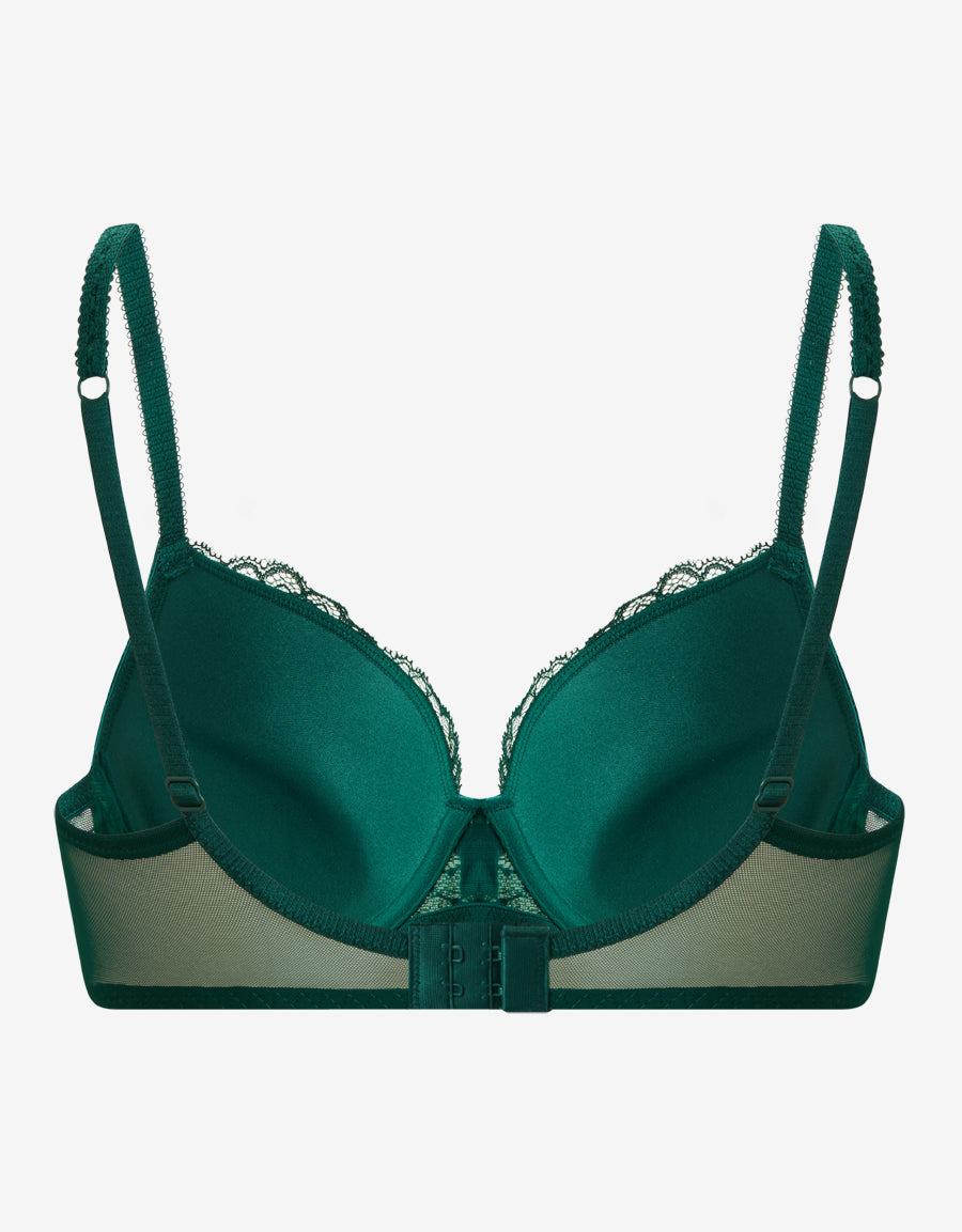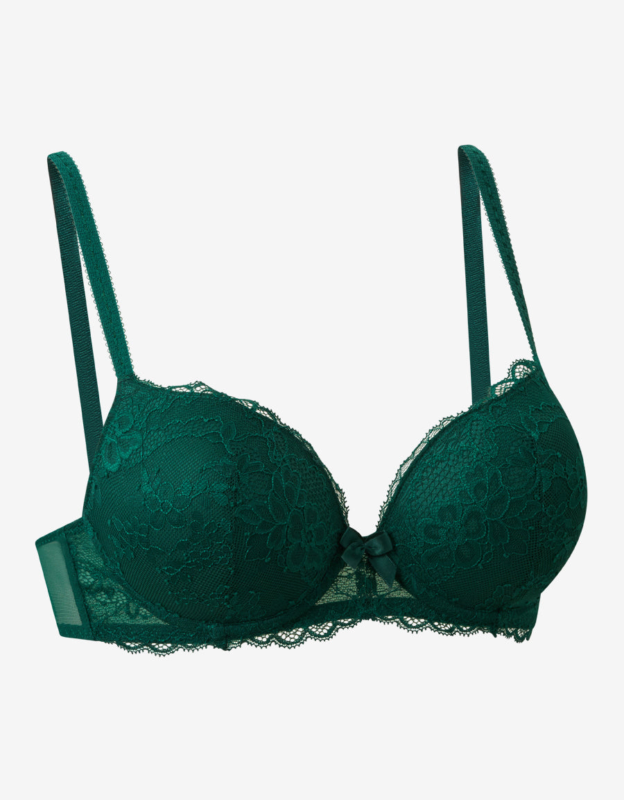 أبرزي شكل جسمك مع هذه الحمالة بالكونيت الخضراء الداكنة. مصنوعة من دانتيل ناعم وبدعم جل، تمنحك رفعاً جذاباً ولمسة أنثوية أنيقة وواثقة.