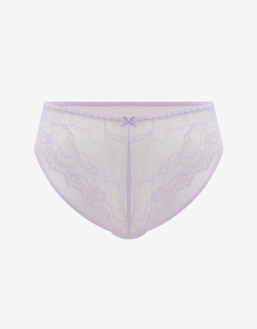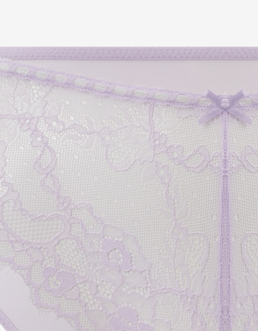 يلتقي الدانتيل الناعم مع الشبك الرقيق في هذا البكيني البنفسجي الفاتح، بتصميم أنيق يناسب الاستخدام اليومي ويمنحك لمسة رومانسية.