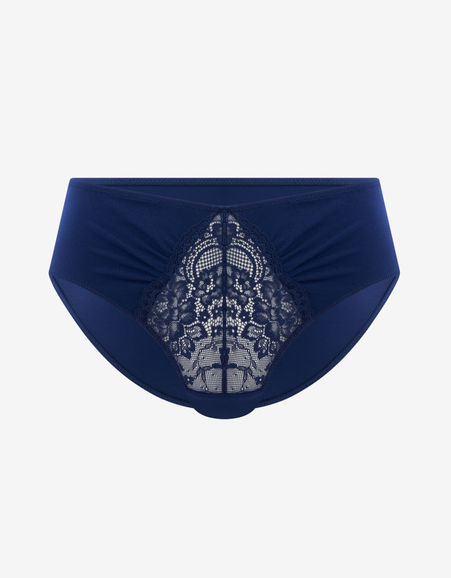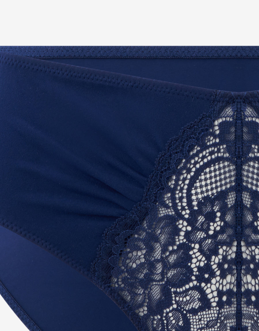 يتميز هذا البكيني الأزرق الداكن بتصميم من المايكروفايبر الناعم والدانتيل، ليمنحك مظهراً جذاباً وأناقة تدوم طوال اليوم.