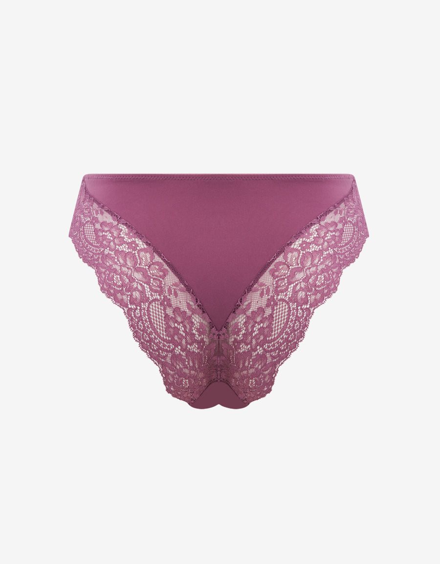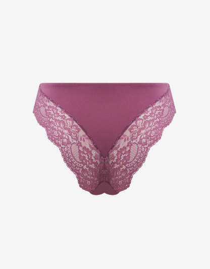 بلونه الموف الناعم، يقدم هذا البرازيلي اطلالة مريحة وانسيابية. مصنوع من مزيج المايكروفايبر والدانتيل لتشكيل القوام بأناقة.