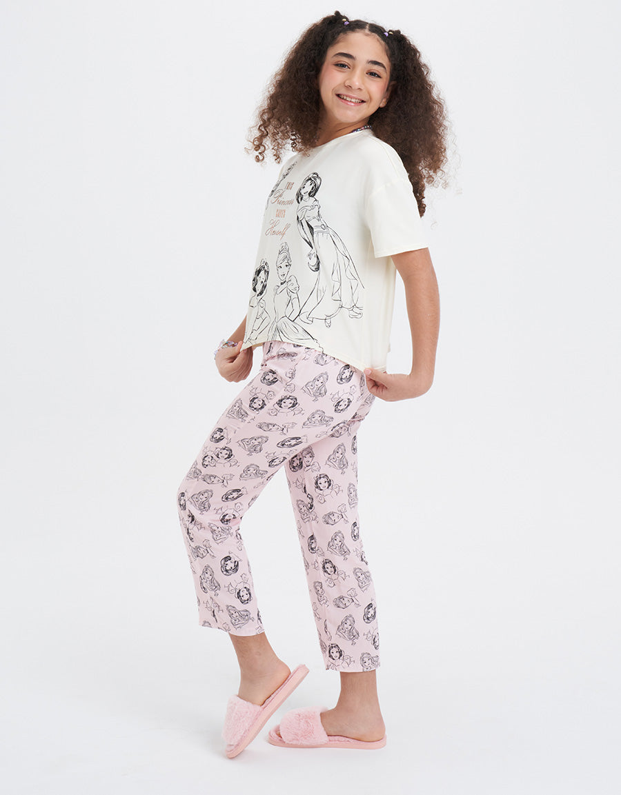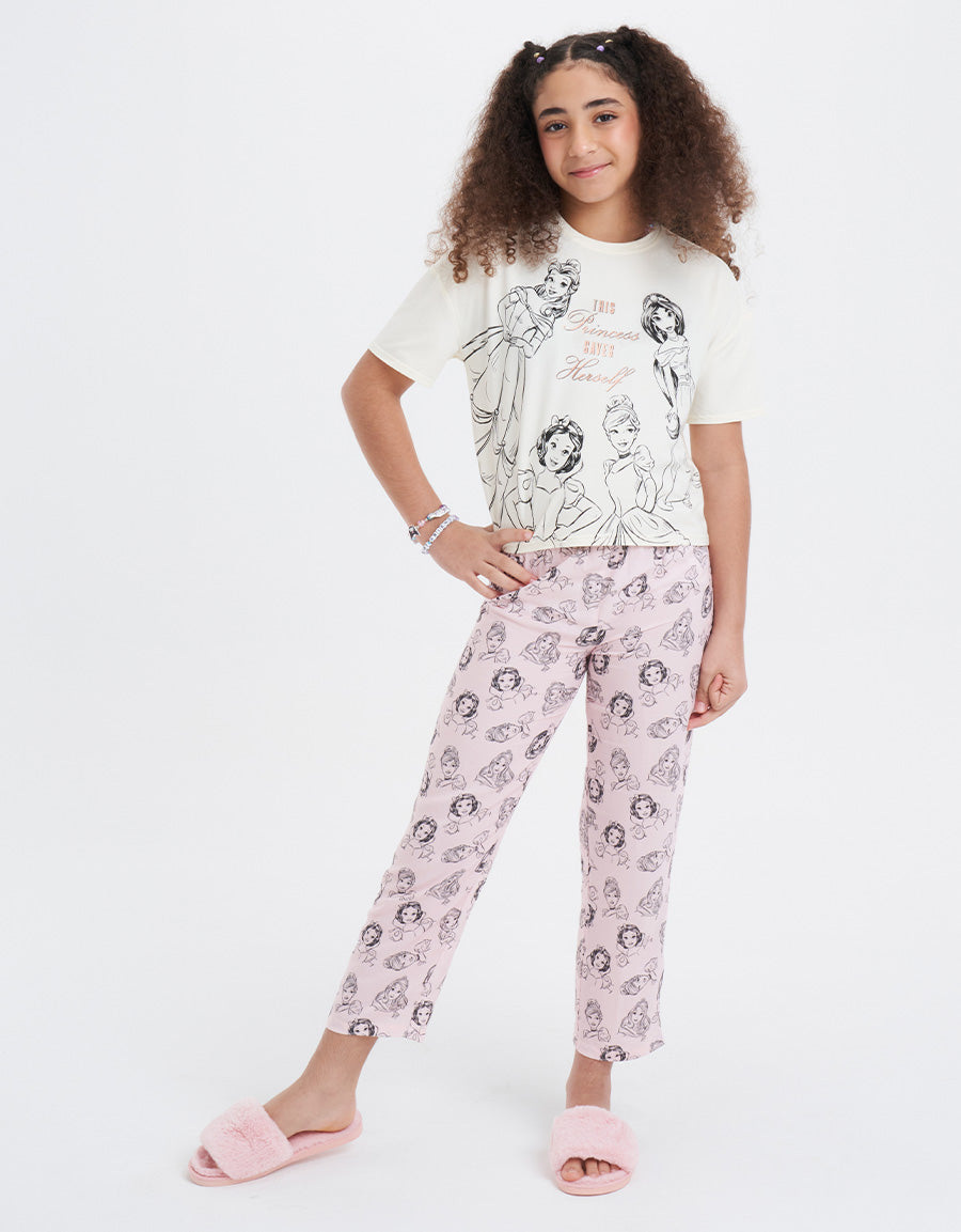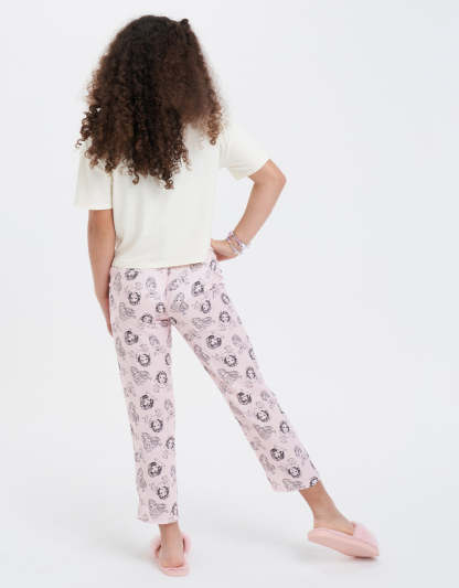 مصنوع من مزيج البولي رايون سباندكس والفيسكوز التويل، يوفر طقم البيجاما متعدد الألوان بطباعة شخصيات تصميماً ممتعاً ونعومة لراحة مثالية أثناء النوم.