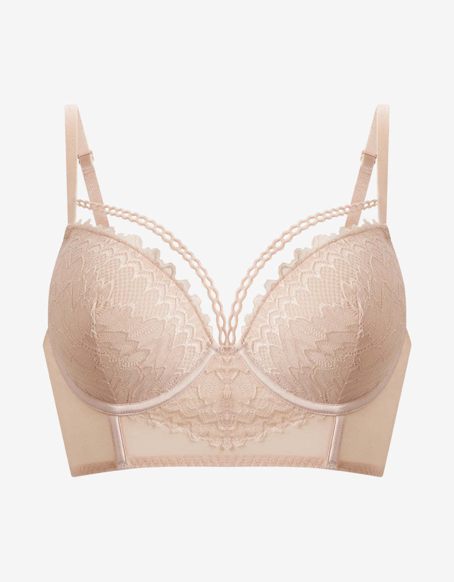 تجمع هذه الحمالة بلون النيود بين الأناقة والدعم. مصنوعة من دانتيل ناعم، بتصميم دعم دفع وفتحة صدر عميقة لإبراز الشكل الطبيعي بإطلالة أنيقة وناعمة.