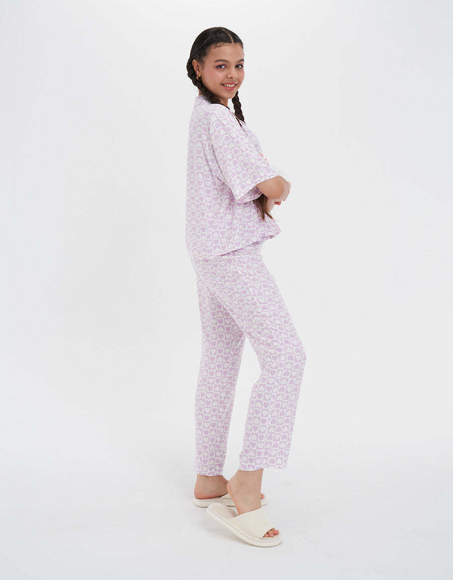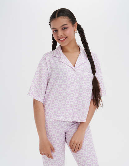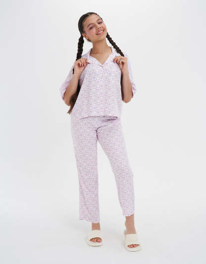 استمتعي بالراحة مع طقم البيجاما المريح هذا، المصنوع من قماش ناعم يشعر باللطف على بشرتك. مثالي للاسترخاء أو النوم الهانئ، يجمع بين الأناقة والاسترخاء في آن واحد.