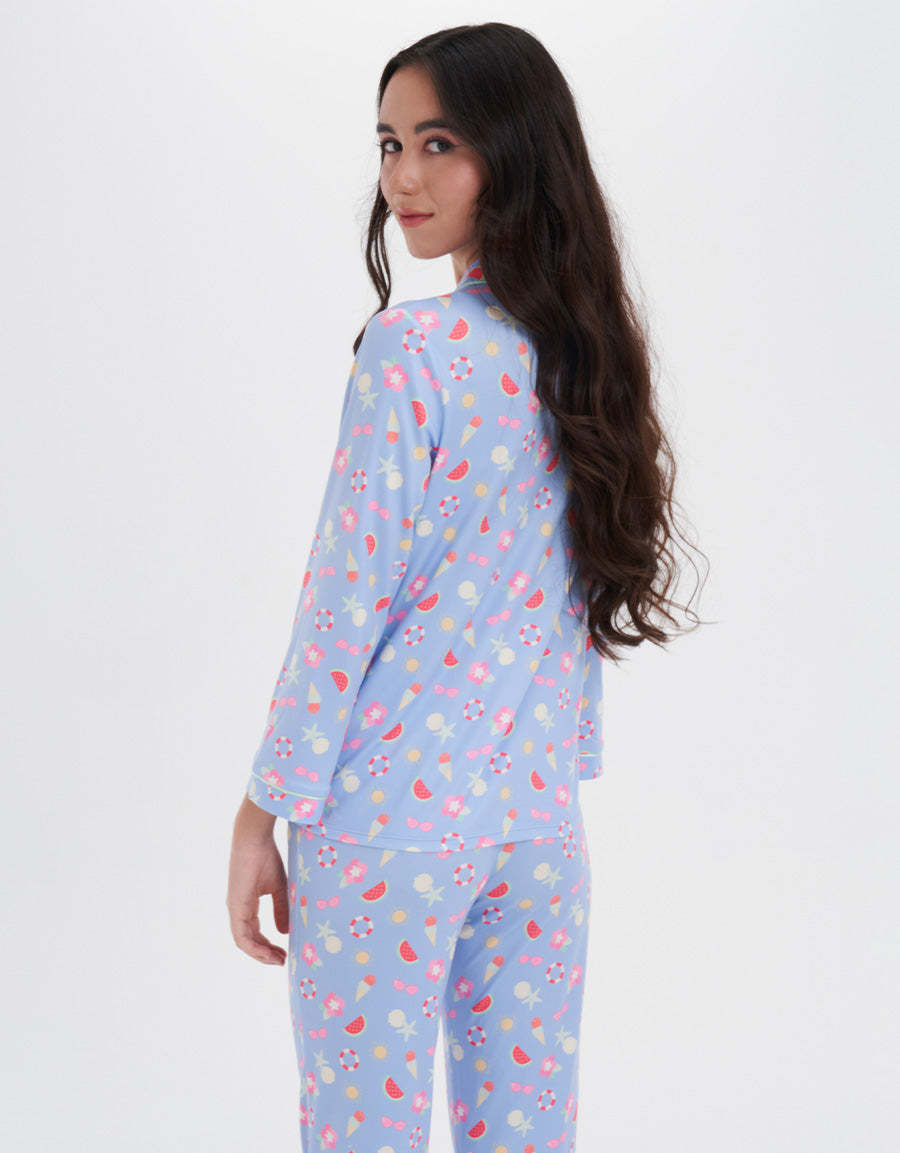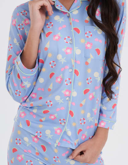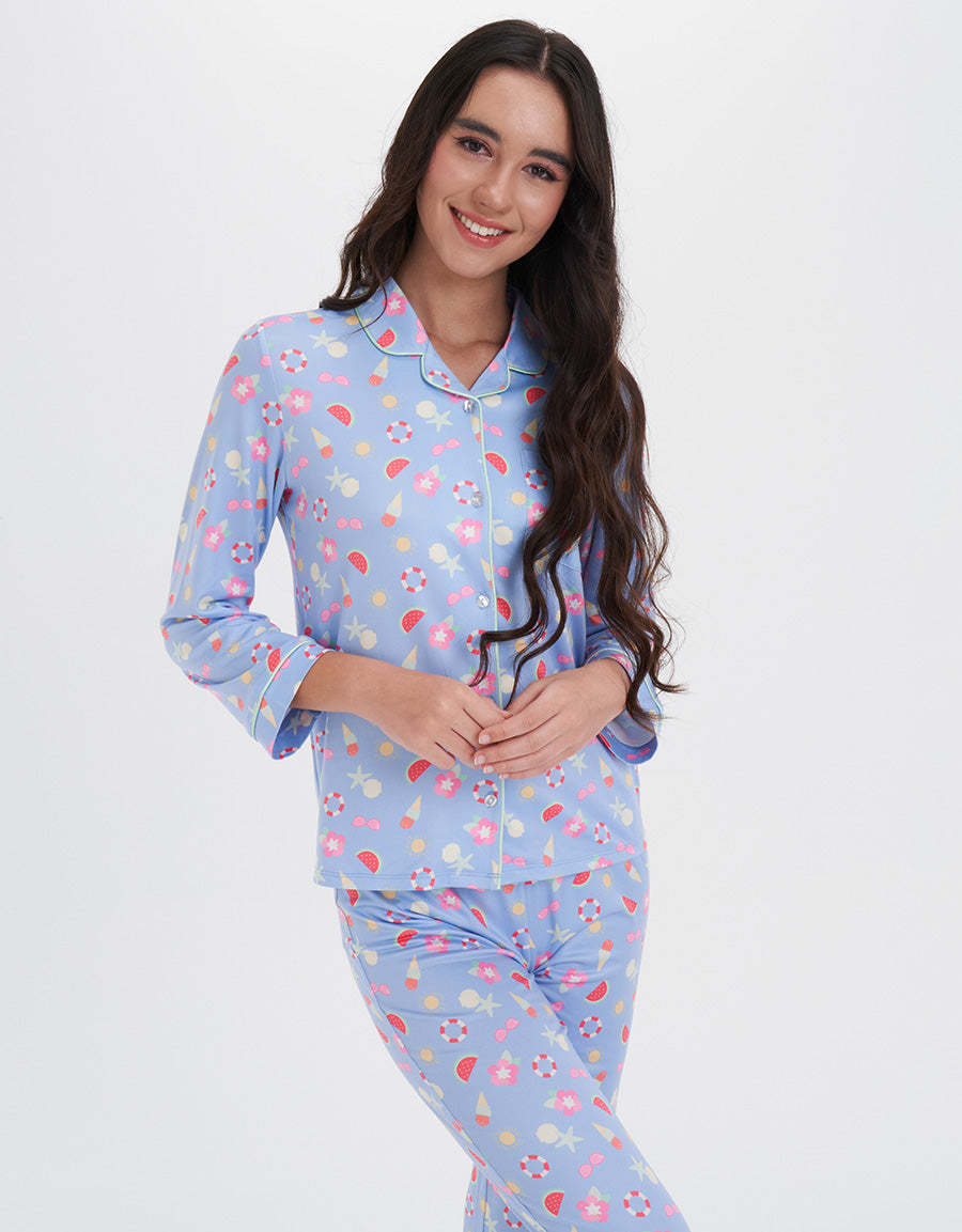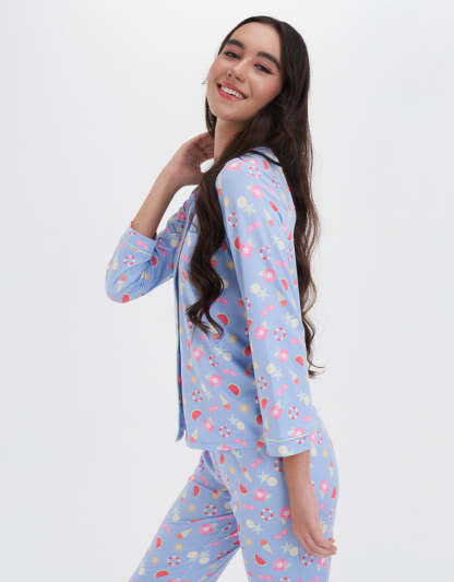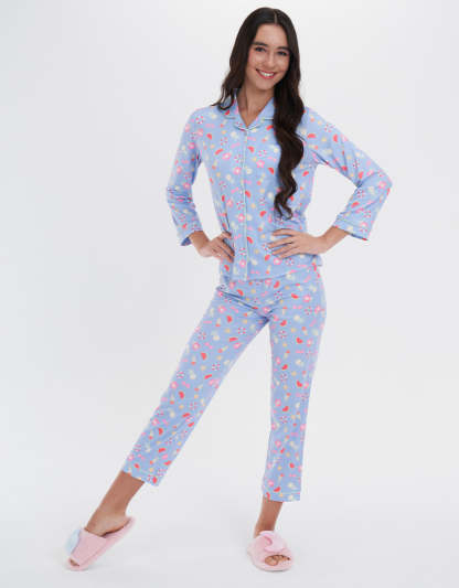 طقم بيجاما كلاسيكي مصنوع من قماش ناعم وخفيف يشعر بلطف على بشرتك. مثالي للاسترخاء بعد يوم طويل أو لقضاء صباح عطلة مريح، يضيف الراحة والأناقة.