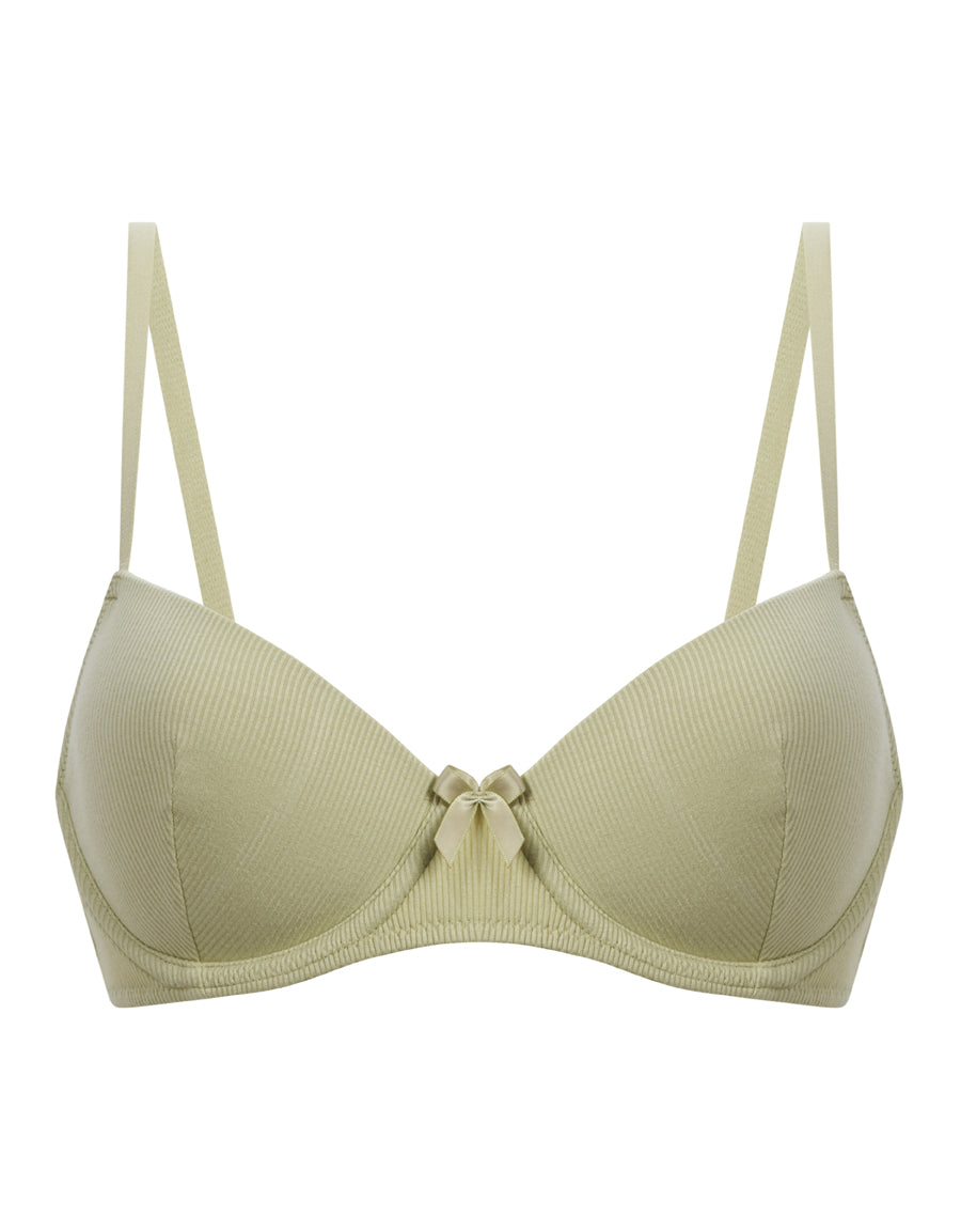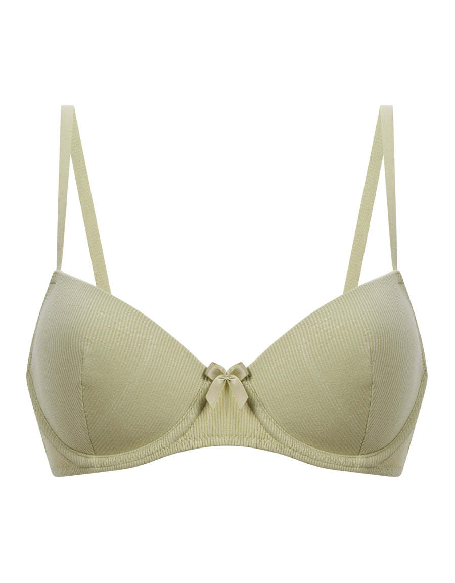 بسيطة، داعمة وأنيقة — حمالة الصدر البالكونيت بلون الأخضر الفاتح مصممة لتمنحك تحديداً طبيعياً. بتصميم ياقة واسعة وقماش مضلّع لراحة مثالية ولمسة عصرية ناعمة.