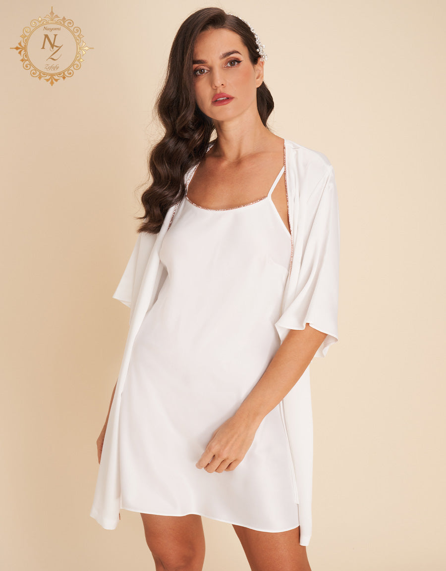 انغمسي في الأناقة مع هذا الطقم العرائسي، المصمم للراحة والأسلوب الراقي. يضم قميص نوم قصير، روب قصير، طقم بوكسر، وبيجاما—مثالي لكل لحظة مميزة.