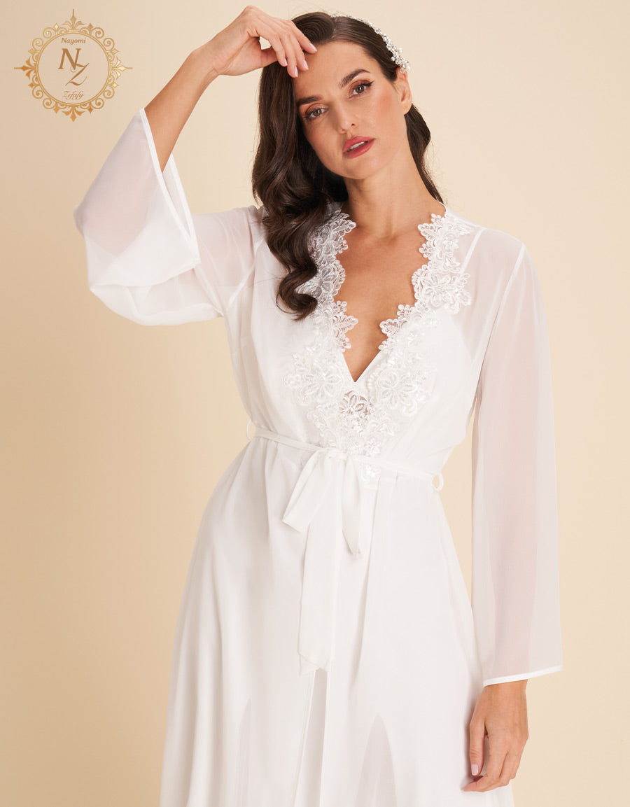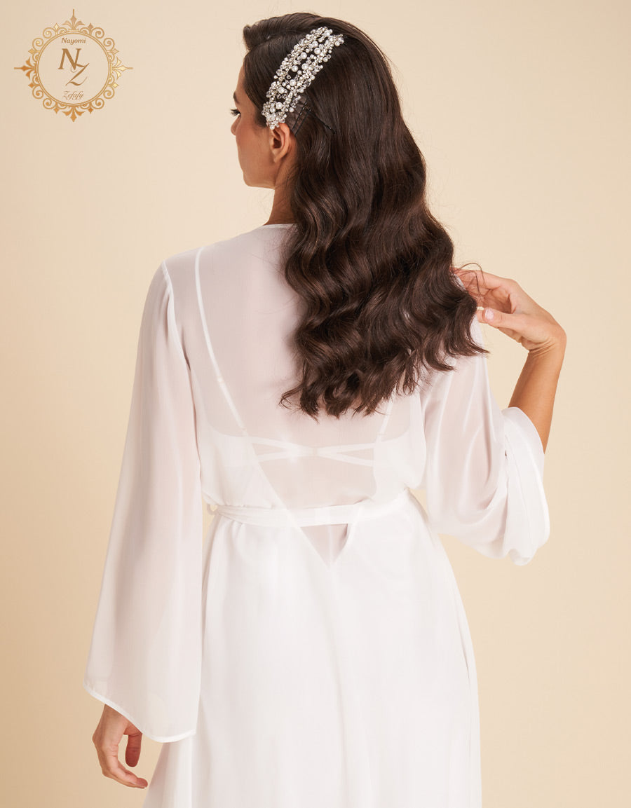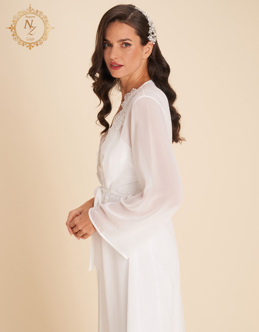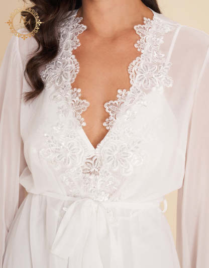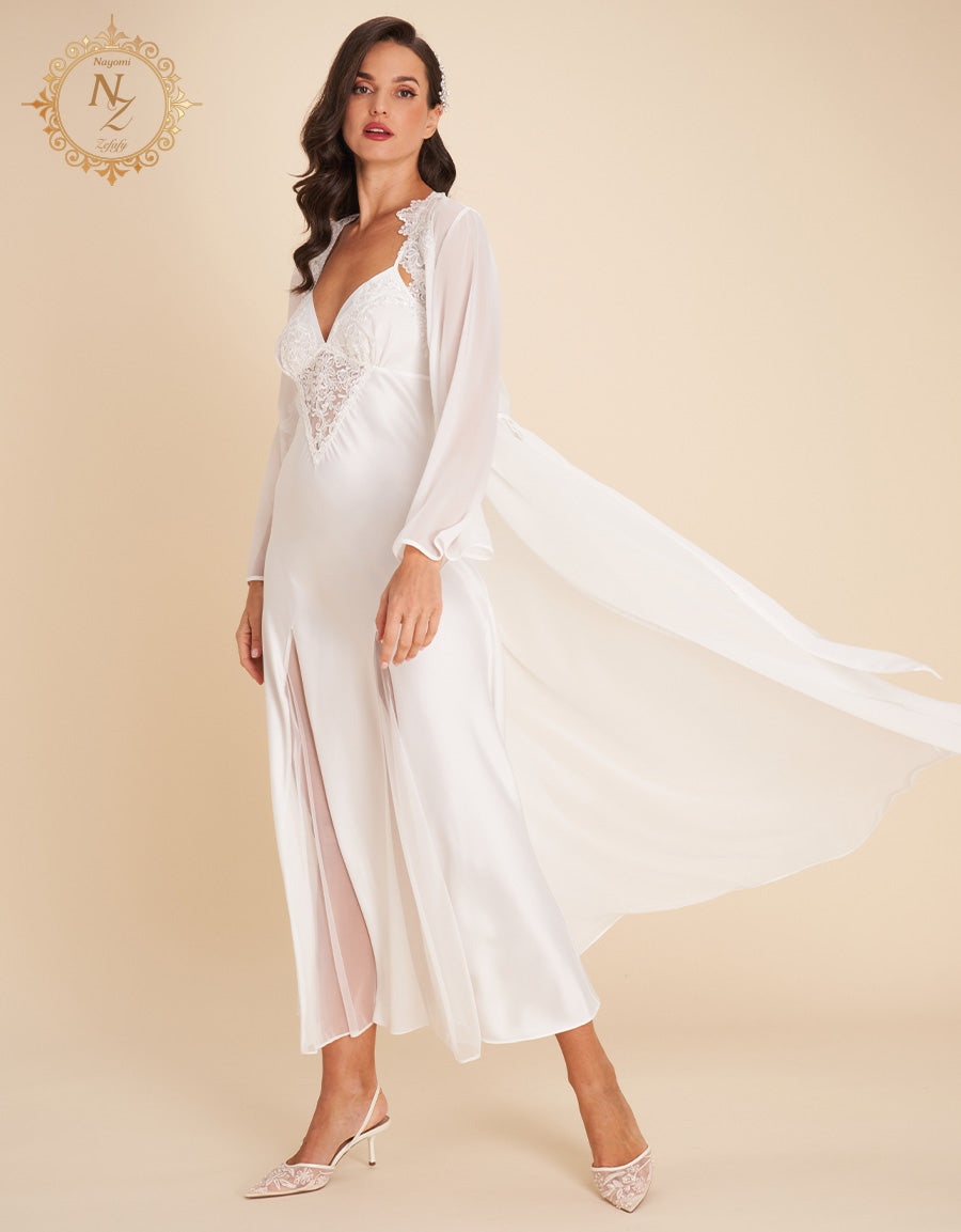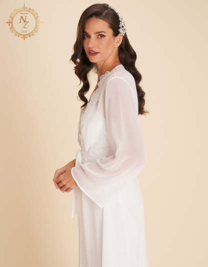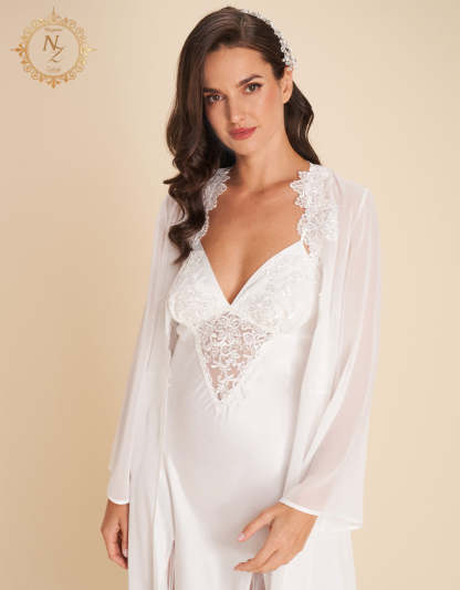 انغمسي في الفخامة مع هذا الطقم العرائسي المكون من 7 قطع، المصنوع من الساتان والشيفون لأناقة راقية بلا مجهود. يضم الطقم قميص نوم طويل، طقم بيجاما، طقم بوكسر، قميص نوم قصير، روب قصير، وروب طويل—مثالي لكل لحظة عرائسية.