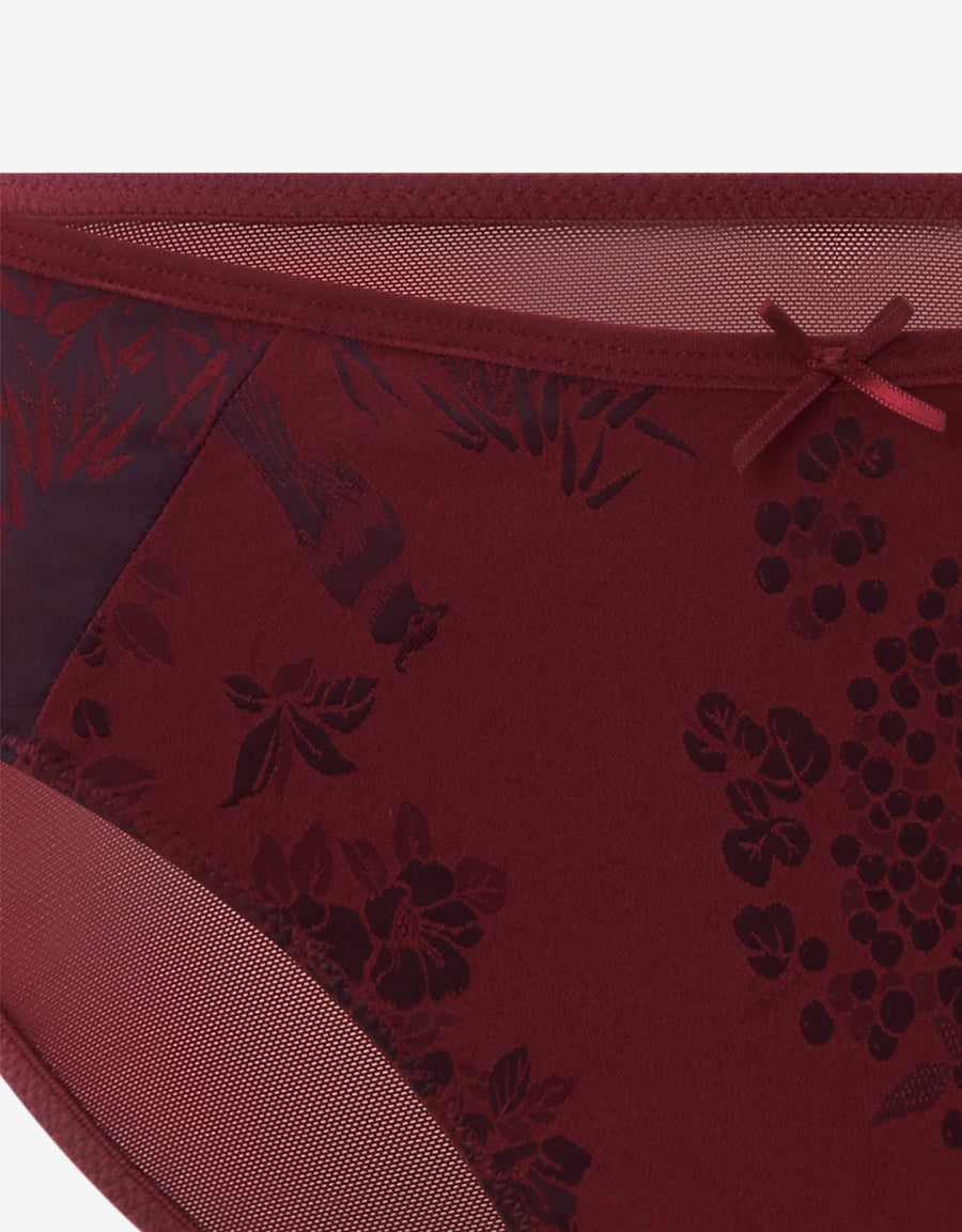 بكيني من الساتان الأحمر والوردي الداكن بنقشة زهرية بالكامل، يوفر اطلالة ناعمة تُبرز قوامك بأناقة مبهرة.