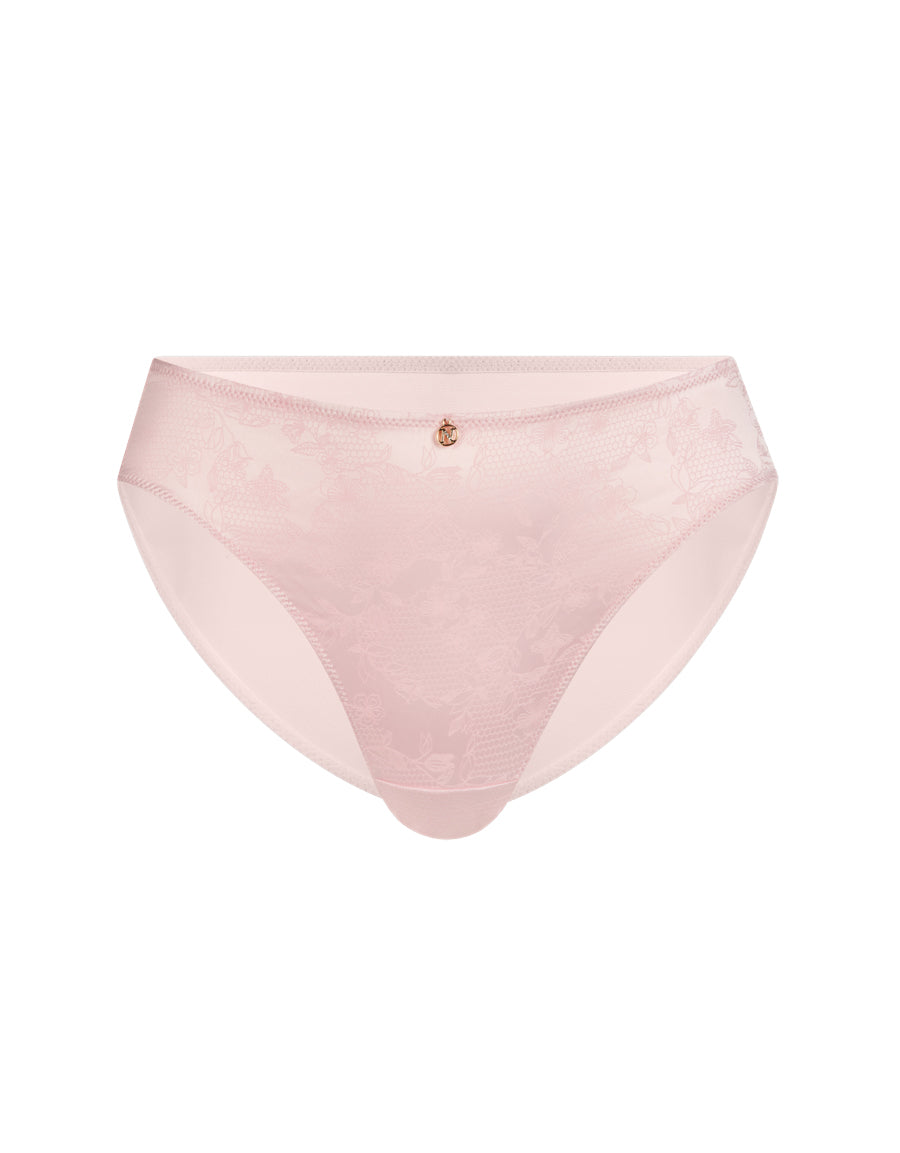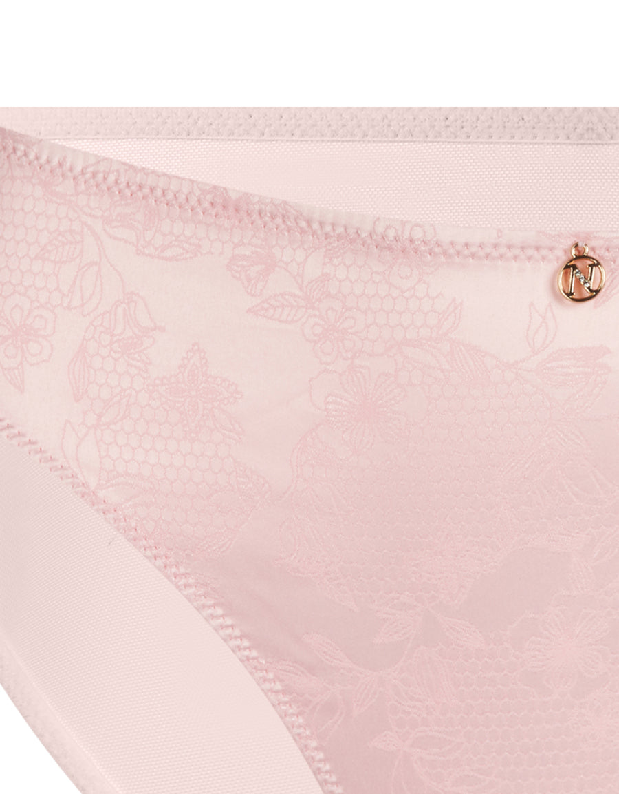 بكيني وردي فاتح من ساتان جاكار بنقشة تجريدية، يمنحك اطلالة ناعمة ومظهر عصري جذاب.