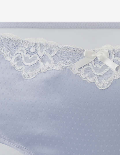 يجمع هذا البوكسر الأزرق الفاتح للعروس بين ساتان الجاكار الناعم والدانتيل الرقيق. مثالي للحظاتك الخاصة، حيث يدمج بين الأناقة والراحة.