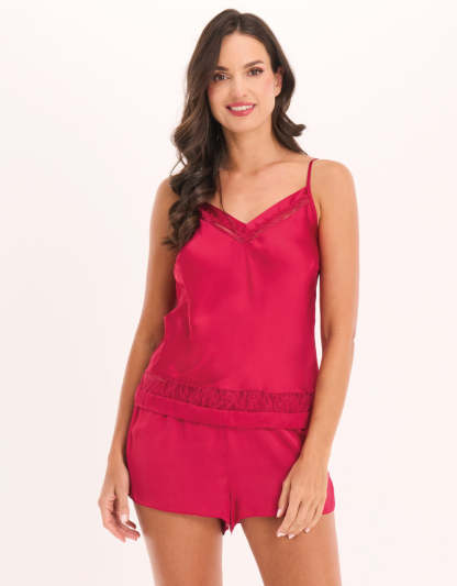 اشعري بالأناقة مع هذا الكامي الأحمر الناري. بلمسة حريرية وانسيابية أنيقة، يمنحك طقم ستيفاني لمسة من الفخامة في كل ليلة.