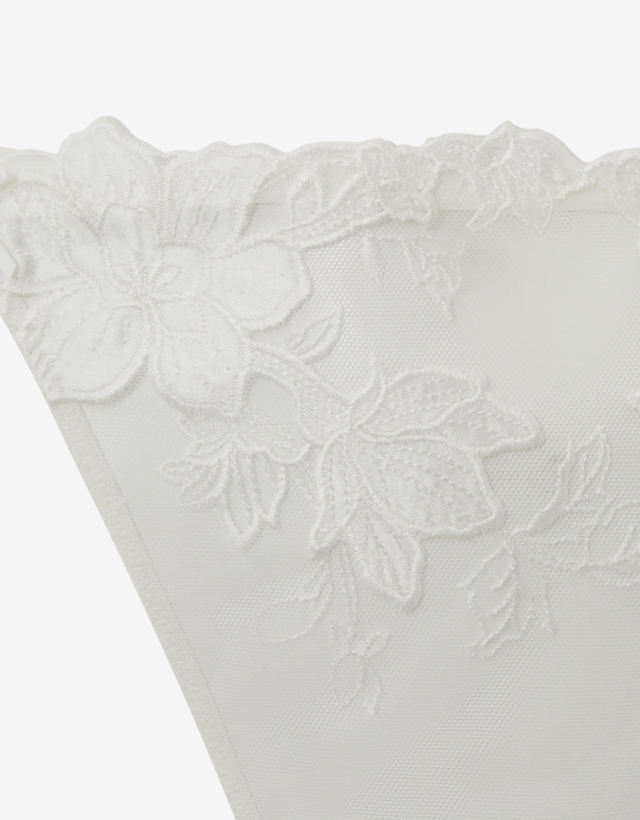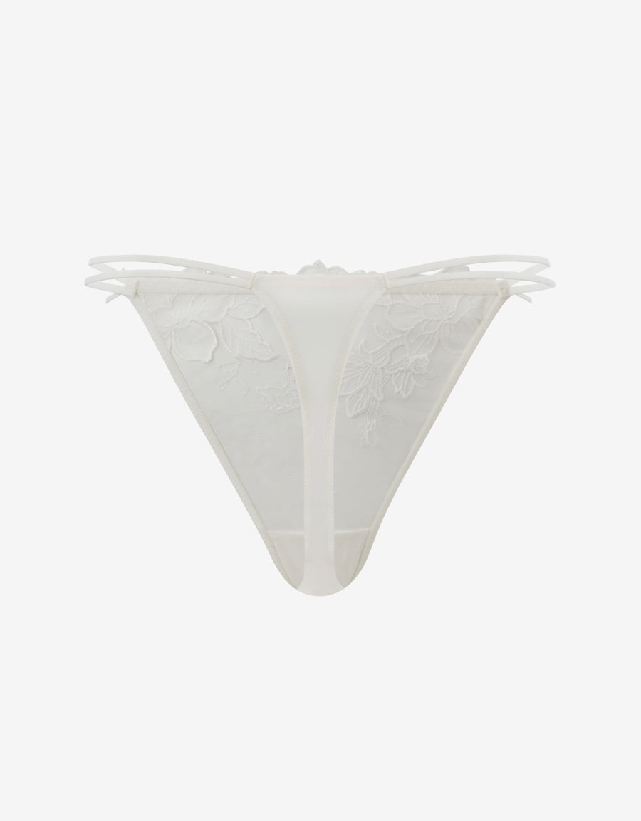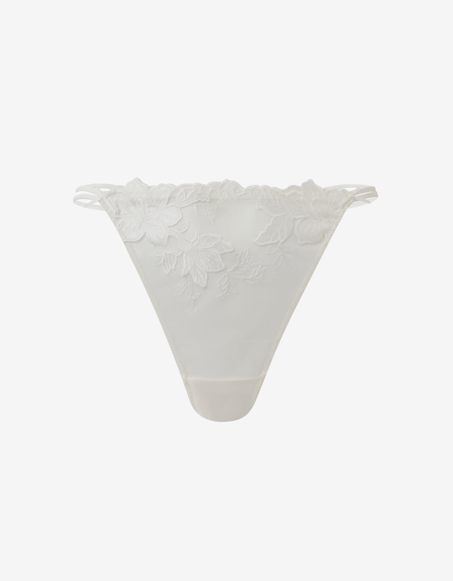 صُنع هذا الثونغ الأبيض للعروس من الساتان والتطريز والشبك، ليجمع بين الراحة والرقي، وهو إضافة مثالية لمجموعة ملابسك الداخلية الخاصة بالعروس.