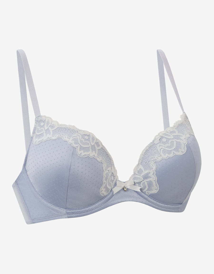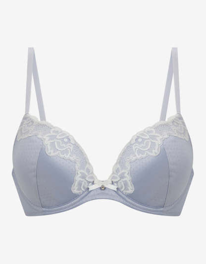 كوني أنيقة مع هذا البرا الأزرق للعروس. مصنوعة من الساتان والدانتيل بطبعة جاكار، بدون بوش أب، تمنحك شكلًا طبيعيًا وأناقة رومانسية ليومك الكبير وما بعده.