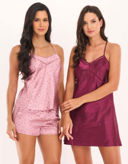 طقم بوكسر وقميص نوم قصير ساتان