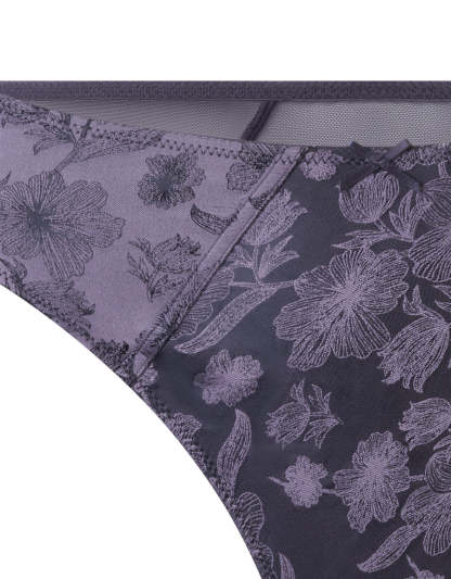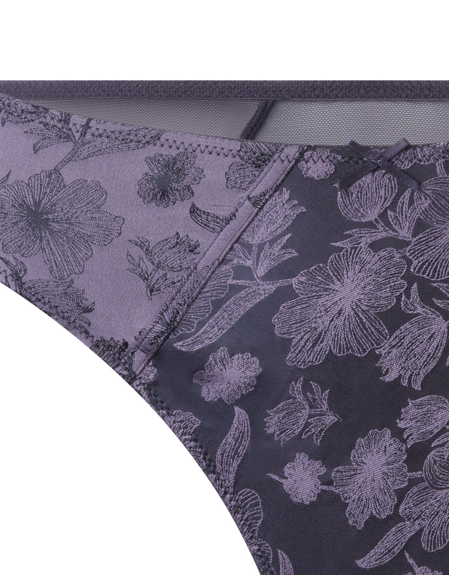الأناقة تلتقي بالعصرية في هذا الثونغ الرمادي المصنوع من الساتان. مصمم بقماش الجاكارد الفاخر ليمنحك لمسة راقية مع راحة تدوم طوال اليوم لتشعري بأفضل إطلالة لكِ.