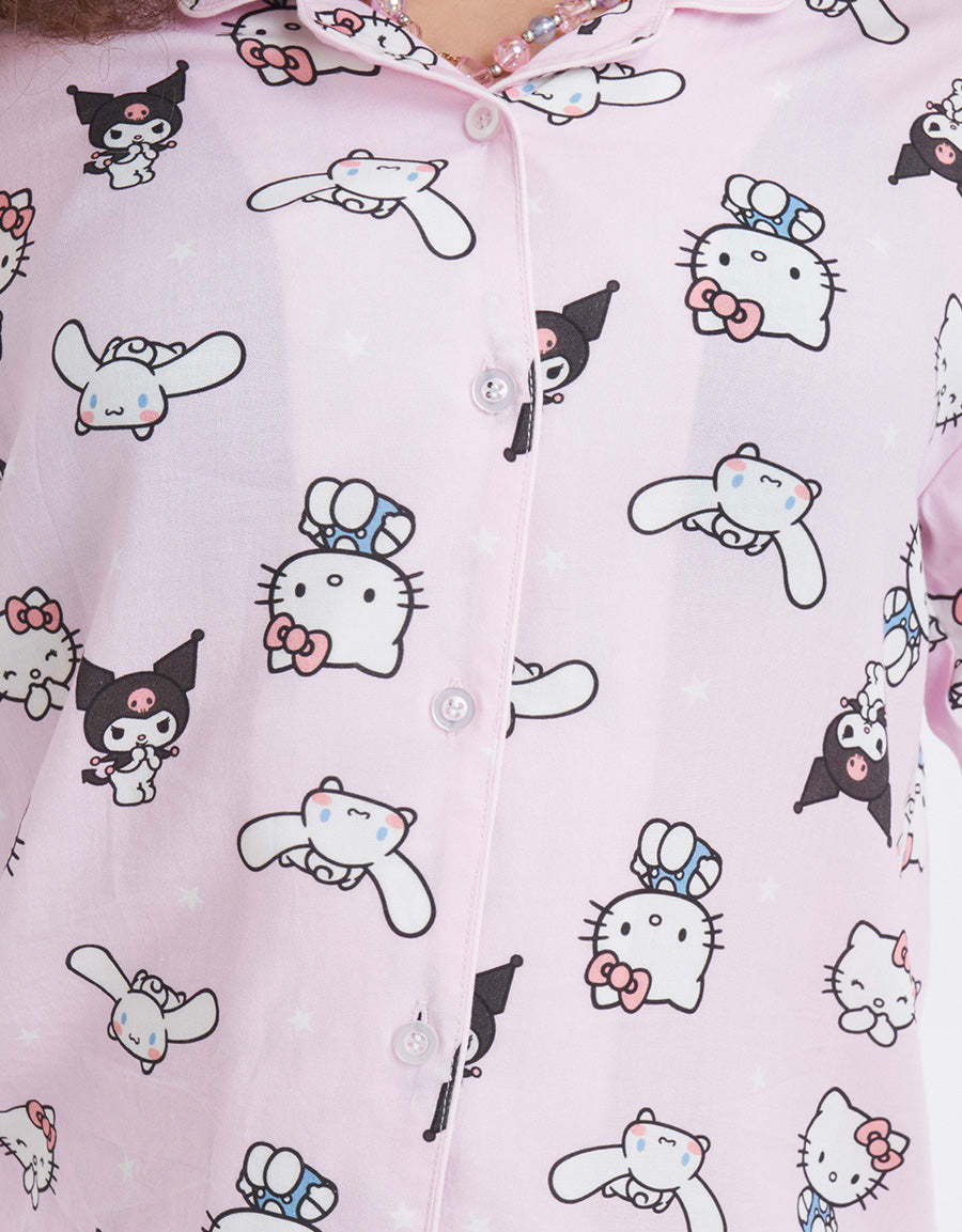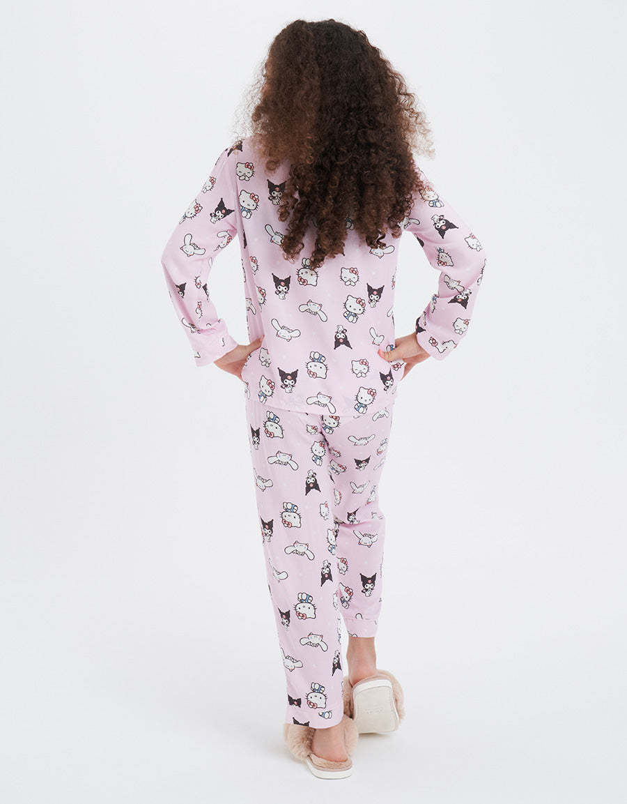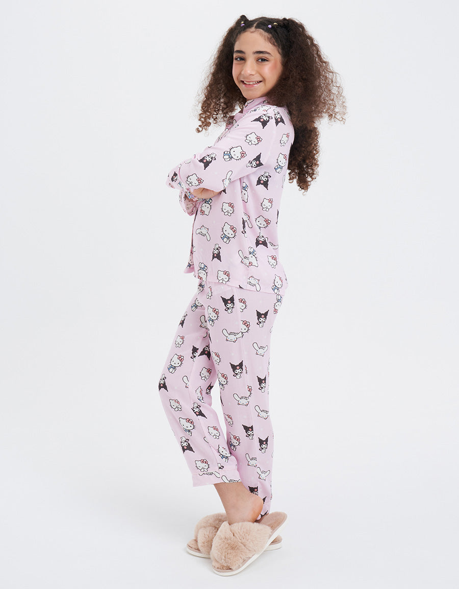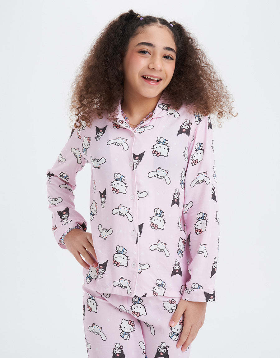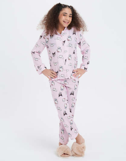 طقم البيجاما الكلاسيكي باللون الأخضر الفاتح، مصنوع من قماش الفيسكوز المسطح ويتميز بطباعة شخصيات، مما يجمع بين التصميم المرح والراحة الدافئة في طقمملابس النوم الخاصة بك.